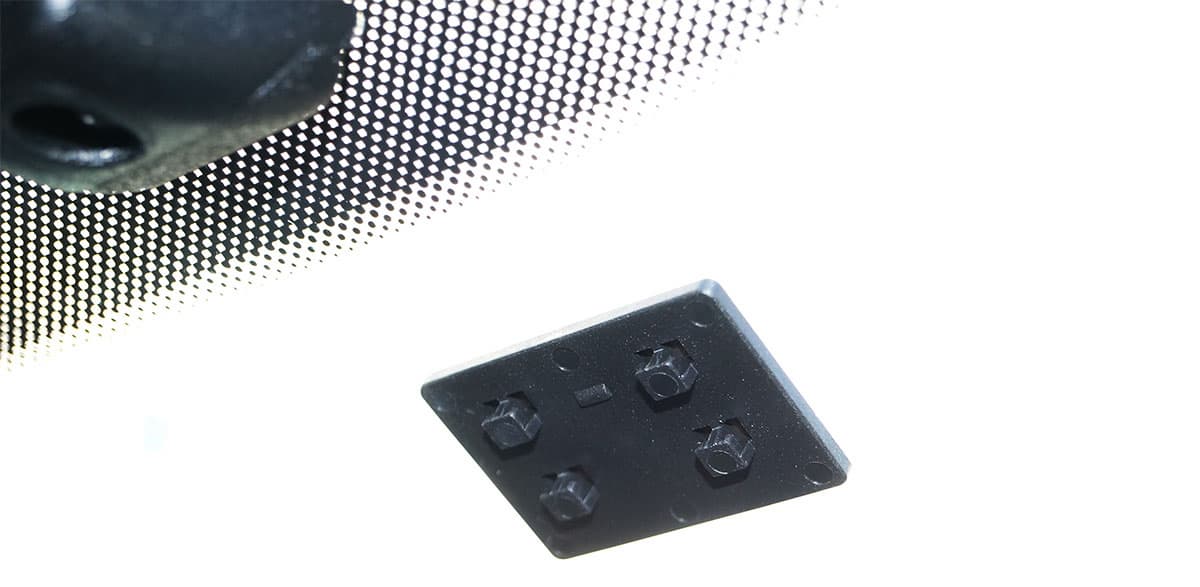 Конструкция крепления разрешает быструю установку и снятие регистратора. Но это не касается самой площадки с клеевой основой, которую один раз приклеил — и навсегда. Регистратор удерживается на площадке благодаря четырем зацепам площадки, которые входят в пазы крепления.