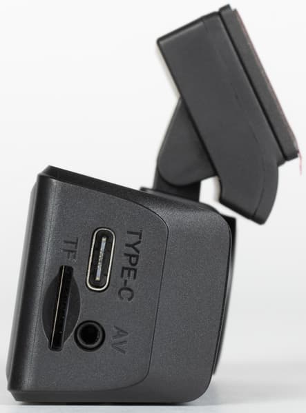 На левом торце корпуса находится еще одна кнопка, пятая. Это кнопка питания, долгое нажатие которой включает/выключает регистратор, а короткое нажатие гасит и включает экран. Правый торец содержит слот карты памяти, Type-C для питания регистратора аудио/видеовход для подключения камеры заднего вида (дополнительная камера приобретается отдельно).