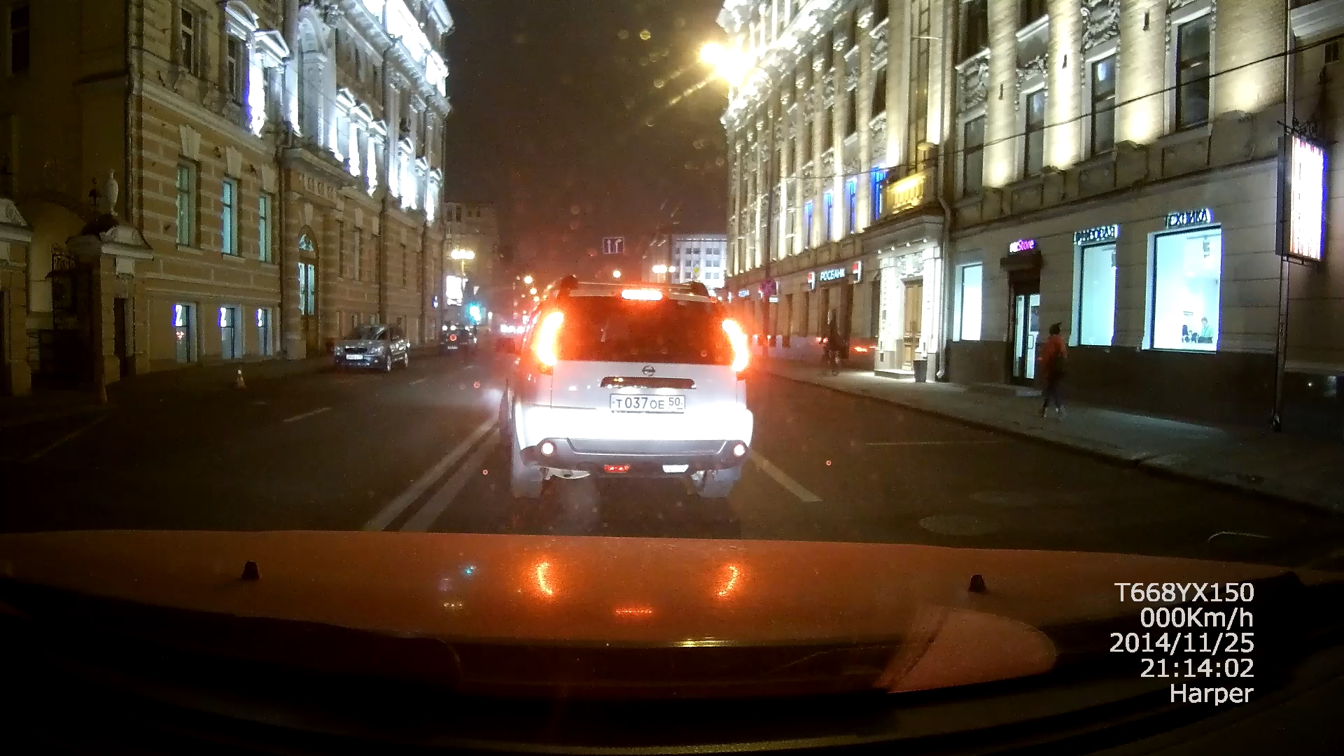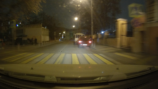 Если в режиме движения номерные знаки в ночной поездке читаются далеко не всегда (только для режима 2304×1296, WDR on), то на светофорах или при езде с небольшой скоростью (до 20 км/ч) номера попутных машин могут быть успешно идентифицированы. В целом стоит отметить достаточно высокое качество изображения в ночном режиме. Для разрешений 1920×1080 и 1280×720 номерные знаки могут быть прочитаны только при хорошем внешнем освещении и низкой скорости автомобиля (до 15 км/ч).