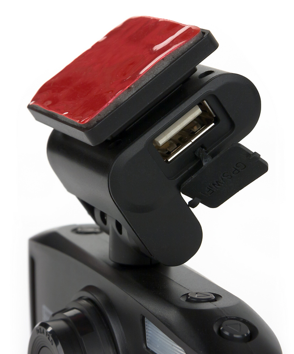 Второй разъем Mini-USB, накрытый резиновой крышкой, находится на одной из боковых граней модели и используется для передачи данных между ПК и видеорегистратором. Это достаточно необычное решение, так как два порта Mini-USB можно заменить одним универсальным. В данной модели видеорегистратора разделение портов обусловлено особенностью крепления, в котором и так проходит кабель для USB-порта GPS и кабель питания. Необходимость увеличить количество проводов в кабеле для передачи данных заставила бы изменять конструкцию поворотной ножки модели. Отметим, что рядом с портом для данных Mini-USB находится видеовыход Mini-HDMI (тип C).