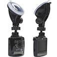 Размеры этой модели нельзя назвать очень большими, поэтому на фоне лобового стекла она не выделяется слишком явно. С другой стороны, крепление кронштейна сопоставимо по размерам с самим HP Car Camcorder f310, поэтому на лобовом стекле видна в первую очередь присоска, а не сам видеорегистратор.