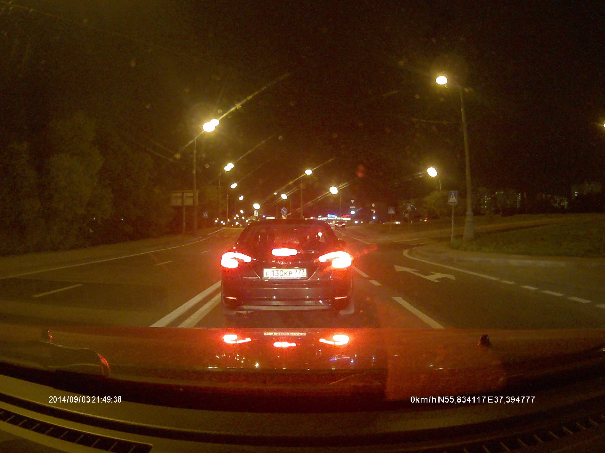 Впрочем и для более высокого разрешения засвет номеров, а также сильное внешнее освещение ведут к снижению качества изображения. Проблемы, как всегда, возникают при удалении автомобиля и освещении его фарами машины видеорегистратора. Номер получается полностью засвечен, в то же время номер попутного авто в соседнем ряду читается очень хорошо.