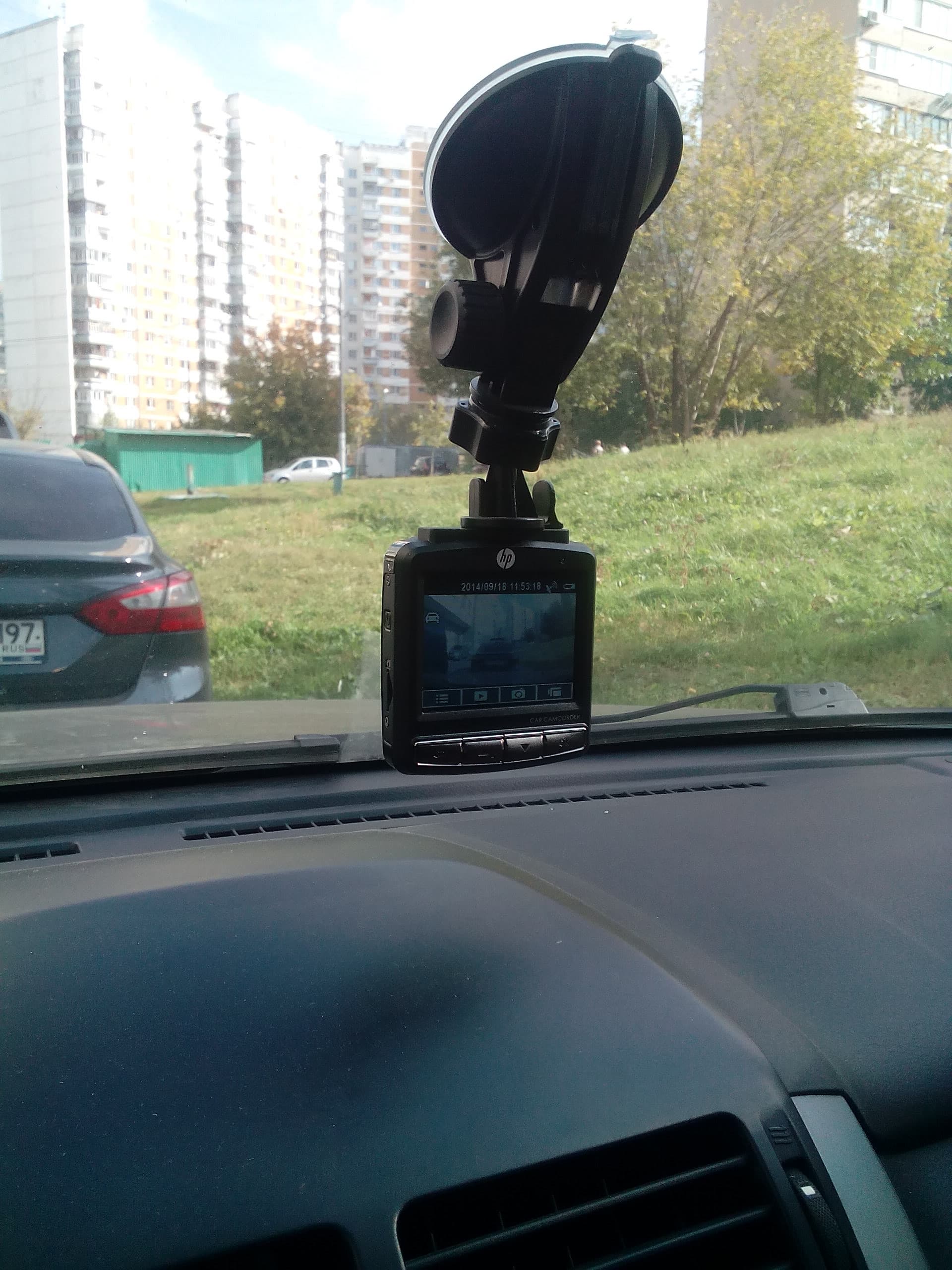 Как и большинство видеорегистраторов, HP Car Camcorder f310 оптимально устанавливать по центру лобового стекла. Поскольку камера этой модели имеет весьма неплохие углы обзора, допустимо небольшое отклонение от центральной оси. Так как управление производится с помощью стационарных кнопок, оптимально установить эту модель таким образом, чтобы в любой момент можно было дотянуться рукой до видеорегистратора. Это актуально еще и по той причине, что добавление GPS-меток с радарами будет весьма востребованной функцией при частых поездках по новым трассам. Кронштейн надежно удерживает модель и предотвращает случайные смещения видеорегистратора. В то же время, быстро ослабив основной шарообразный зажим, автолюбитель может быстро повернуть видеорегистратор в нужное направление.