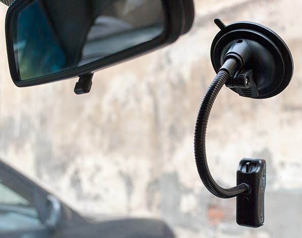 Несмотря на все богатство выбора, при установке в автомобиль ничего лучше присоски с гибким кронштейном придумать не удается: уродовать дырками и саморезами единственное подходящее для других креплений место — стенку зеркала заднего вида — мы уверены, захотят немногие. И это неутешительно, потому что даже для такого легкого устройства гибкая «трубка» кронштейна оказывается недостаточно жесткой, и время от времени на сильных ухабах видеорегистратору удается ее согнуть своим весом (точнее, с помощью знаменитого «эм-вэ-квадрат пополам»…), переключившись таким образом на чрезвычайно интересный, но несколько статичный вид — капот автомобиля.