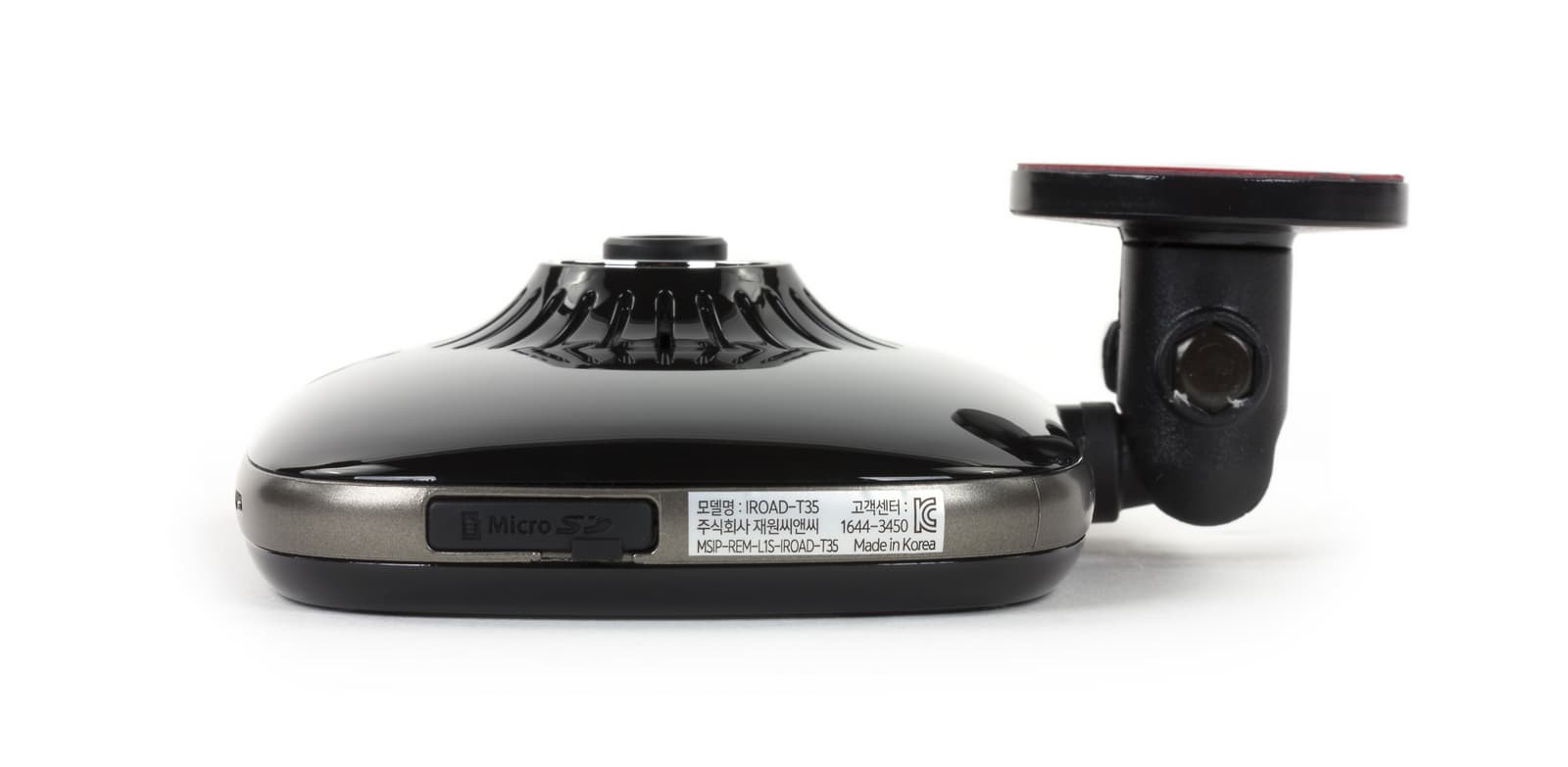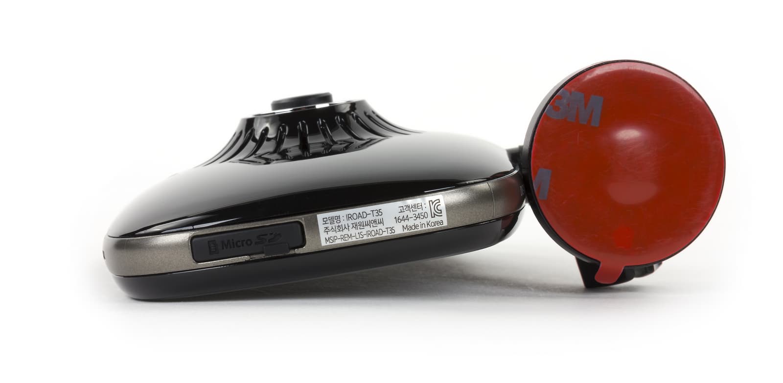 Кронштейн имеет поворотный (в вертикальной плоскости) механизм с механическим упором и круглую поверхность с наклейкой 3М, которая крепится к лобовому стеклу. Недостатком можно посчитать отсутствие отдельной оси поворота камеры по горизонтали, ведь устройство навинчивается на крепление, следовательно, в левую водительскую сторону его уже не повернешь — помешает резьба.