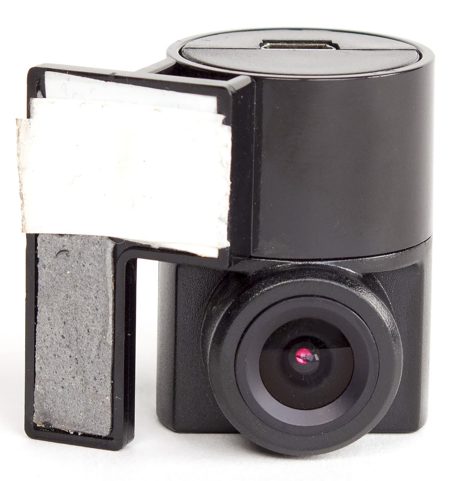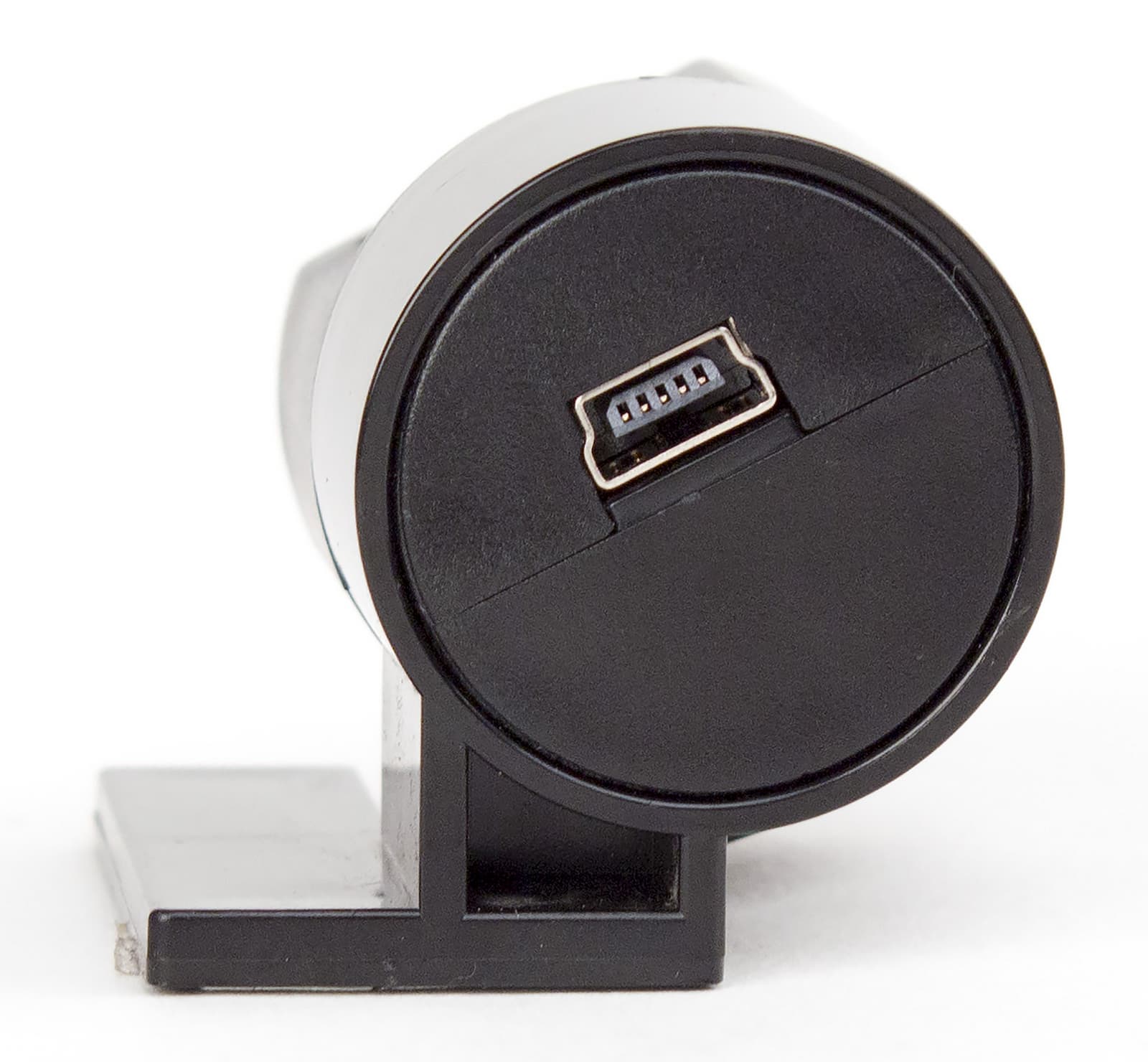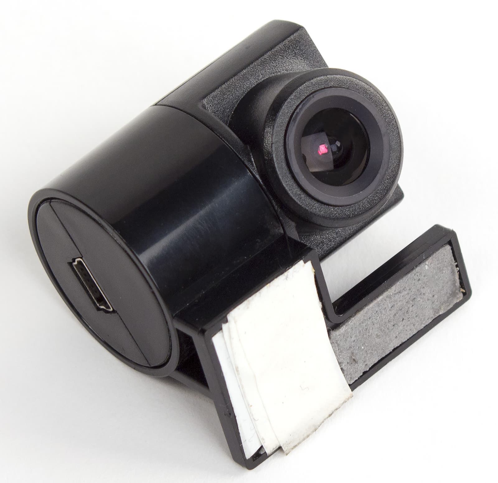 Вторая дополнительная камера, подключаемая через весьма длинный (5 метров) провод с разъемом Mini-USB на конце, предназначена для установки на заднее стекло автомобиля. Выбор стандартного разъема позволяет при необходимости удлинить кабель, но это может понадобиться только для очень длинных авто. Необходимо отметить, что вторая камера имеет достаточно тугой поворотный механизм в вертикальной плоскости, что позволяет более точно выставить ее положение на заднем стекле. Крепится дополнительная камера с помощью небольшой площадки, на которой находится все тот же скотч 3М, но за счет того, что скотч утоплен в небольшую нишу, повторная установка на обычный двухсторонний скотч может быть проблематична.
