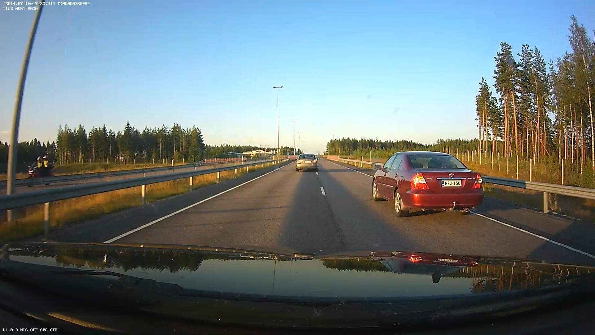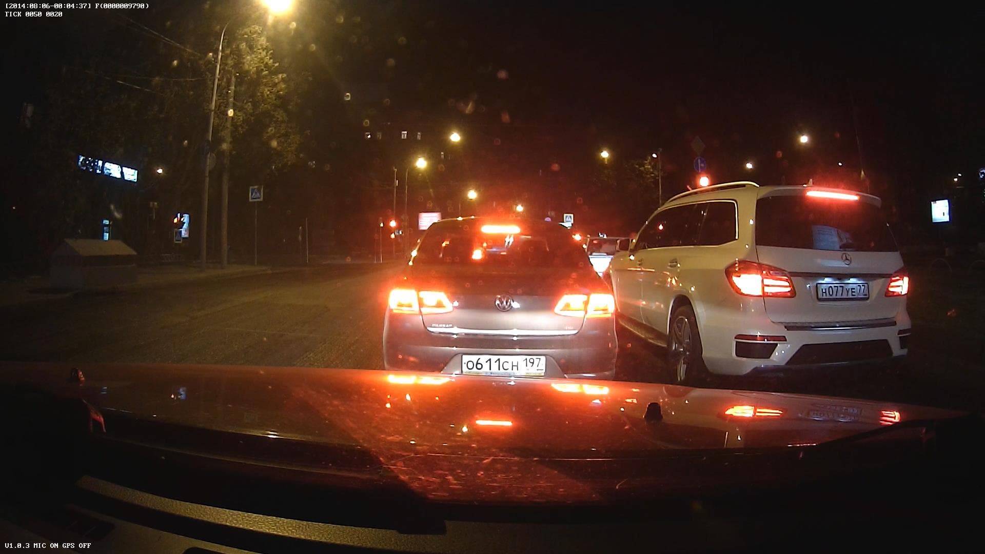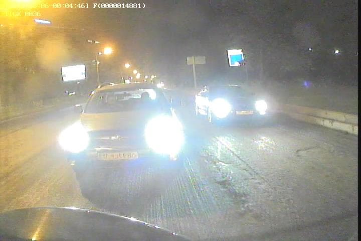 Фронтальная камера при близком расстоянии до впереди идущей/стоящей машины позволяет легко и непринужденно прочитать ее номера. Проблемы, как всегда, возникают при удалении автомобиля и освещении его фарами машины видеорегистратора. Номер получается полностью засвечен, в то же время номер попутного авто в соседнем ряду читается очень хорошо.