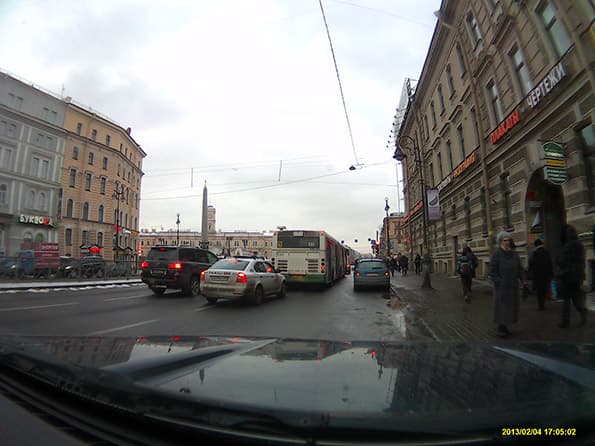 Микрофон обращен внутрь салона и это позволило достичь оптимального баланса между слышимостью происходящего внутри автомобиля и звуками снаружи. Звукоряд почти не перегружен, звуки четкие, без «бубнежки». В общем, от автомобильного видеорегистратора, с нашей точки зрения, требовать большего безосновательно.