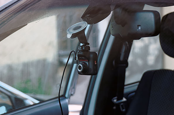 Заметность видеорегистратора на лобовом стекле можно охарактеризовать как обычную: он не бросается в глаза сразу (матовый черный корпус и небольшой размер этому сильно способствуют), однако от ищущего взгляда сохранить этот «секрет» вряд ли удастся.