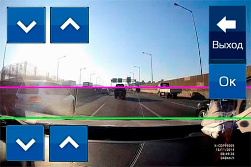 Нельзя обойти вниманием, что в видеорегистраторе Neoline X-Cop 9500s интегрирована система Lane Departure Warning System (LDWS), которая снижает риск возникновения аварии при съезде с полосы движения, что может быть обусловлено усталостью или отвлечением внимания водителя. При включении этой опции, видеорегистратор в реальном режиме времени будет отслеживать положение автомобиля относительно дорожной разметки. Если автомобиль смещается от текущей полосы движения, а система не определяет очевидного маневра по изменению полосы движения, то в этом случае включается звуковое оповещение, а на экран выдается предупреждение. Для корректной работы этой функции существует отдельная настройка, которая позволяет выставить линию горизонта и линию капота автомобиля, таким образом однозначно указав видеорегистратору область. где необходимо отслеживать дорожную разметку. Увы, эта система скорее актуальна для хороших магистралей, чем для обычных федеральных и городских трасс, где разметка обычно или полностью отсутствует, или стерлась от времени.