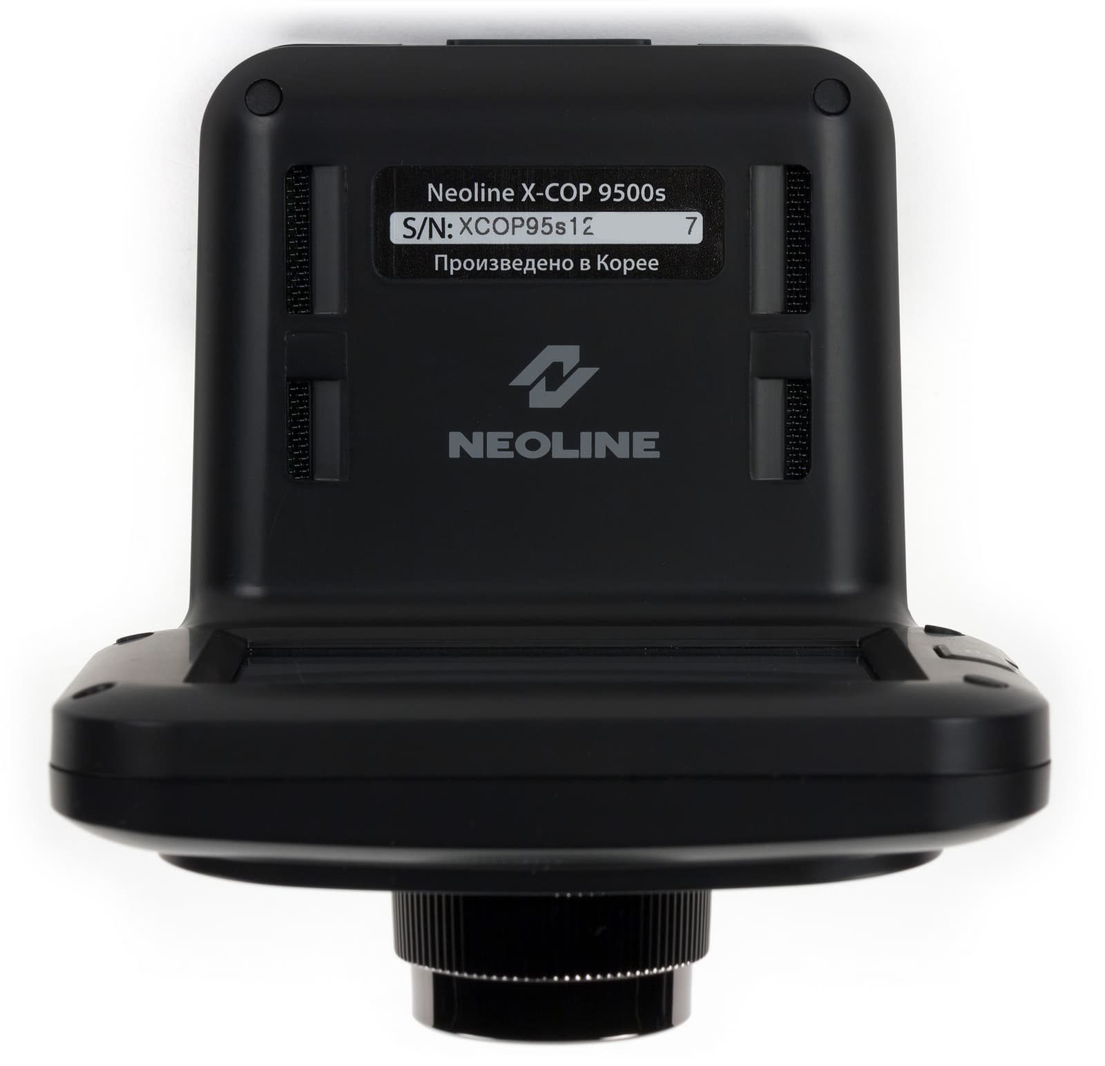 Нижняя часть радар-детектора имеет несколько вентиляционных отверстий. Кроме того, помимо логотипа компании Neoline, там находится небольшая наклейка с серийным номером, названием модели и надписью «Произведено в Корее».