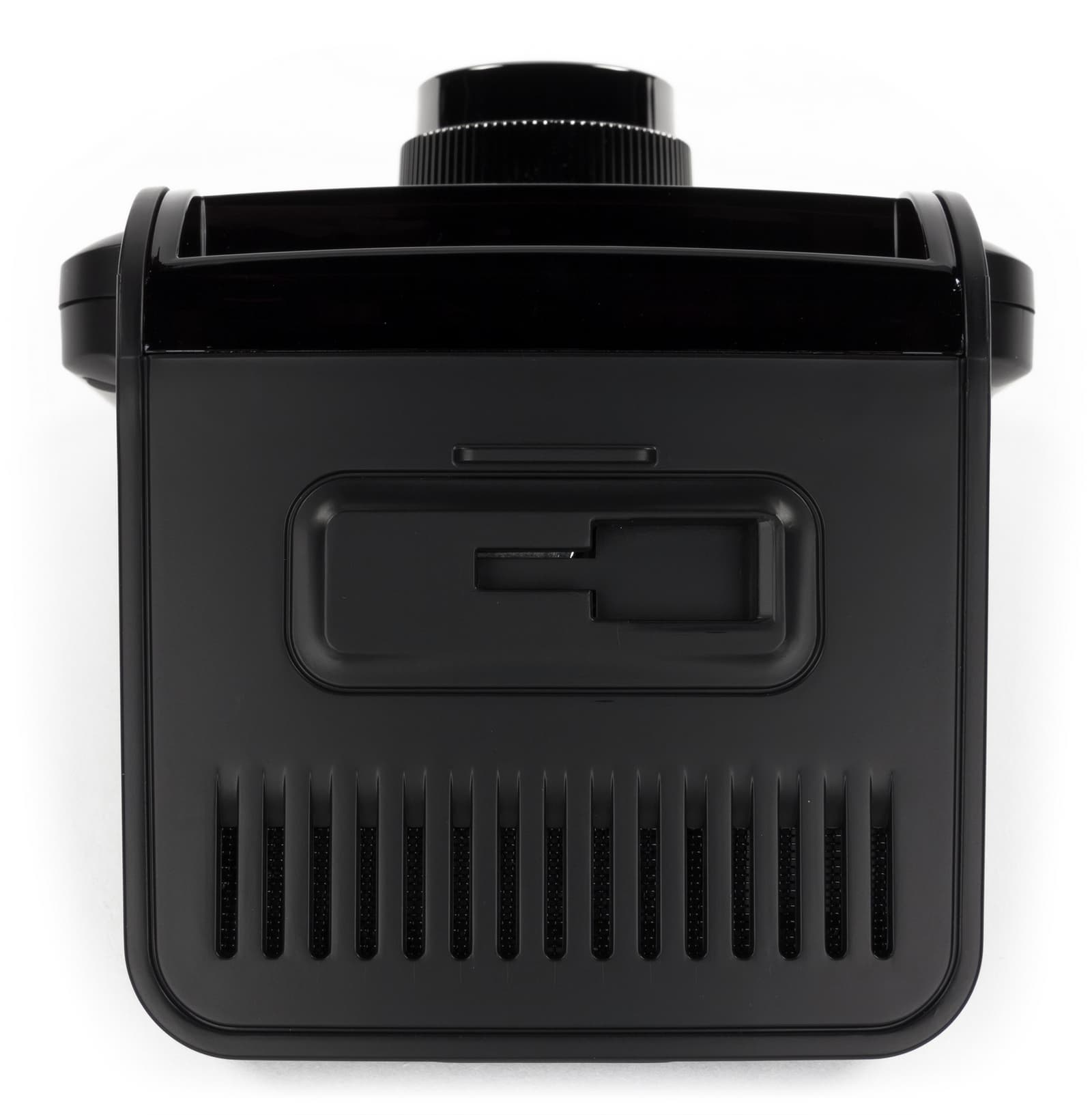 Гнездо для установки кронштейна располагается в центральной части верхней грани видеорегистратора. Neoline X-Cop 9500s устанавливается на кронштейн с помощью защелки, что позволяет достаточно оперативно снять видеорегистратор и убрать его с глаз долой. Рядом с креплением для кронштейна, на верхней плоскости Neoline X-Cop 9500s, расположены вентиляционные отверстия, которые отводят тепло от компонентов радар-детектора.