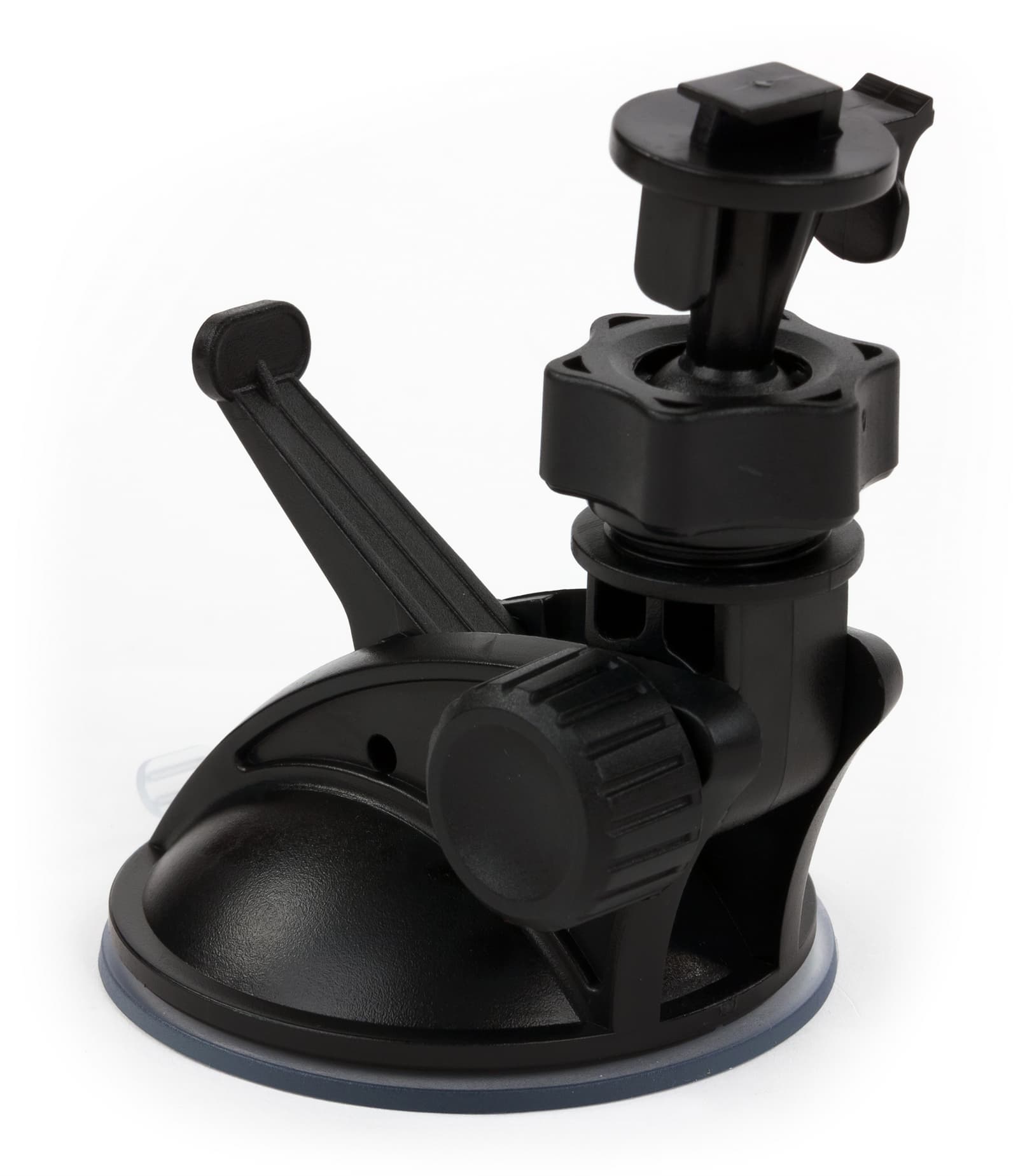 Рассмотрим систему крепления видеорегистратора Neoline X-Cop 9500s. В комплекте с устройством поставляются два отдельных собранных кронштейна, один из которых имеет присоску, а другой крепится с помощью скотча 3М. Кронштейн с присоской, которая зажимается отдельной штангой, сопоставим с размером самого видеорегистратора, благодаря увеличенной площади самой присоски. Оба кронштейна позволяют вращать видеорегистратор на 360° в горизонтальной плоскости за счет шарового шарнира на креплении защелки.