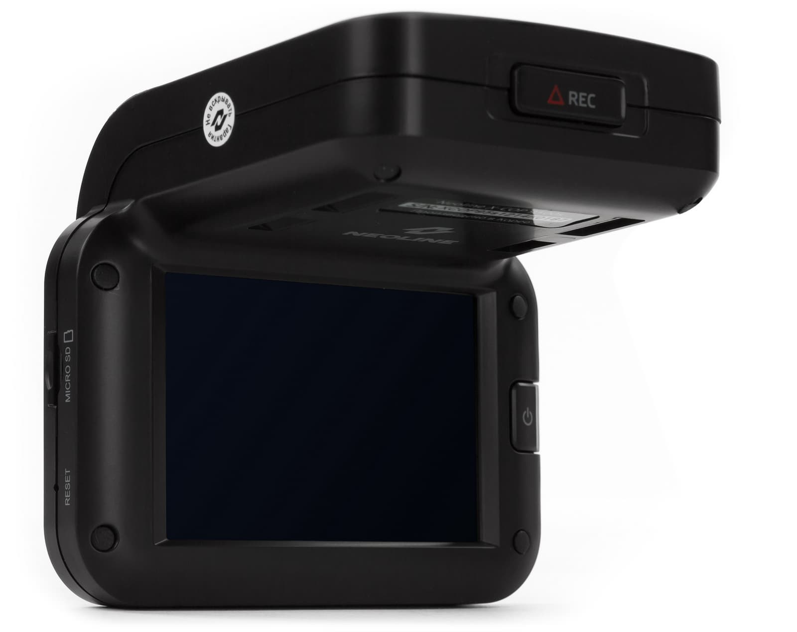 Внешний вид Neoline X-Cop 9500s выделяется на фоне традиционных видеорегистраторов. Это неудивительно, ведь совмещение двух устройств — видеорегистратора и радар-детектора, потребовало от инженеров компании придумать форму устройства, чтобы она была и компактной, и в то же время удобной. Верхняя часть Neoline X-Cop 9500s, которая расположена горизонтально, содержит в себе основную часть радар-детектора, в то время как остальная часть, выполненная вертикально — видеорегистратор. Такое Г-образное исполнение дало возможность сделать весьма устойчивую конструкцию, ведь вес модели составляет без малого почти 200 г. Нависающая радар-детекторная часть дополнительно закрывает экран видеорегистратора от солнечных бликов и практически не бросается в глаза.