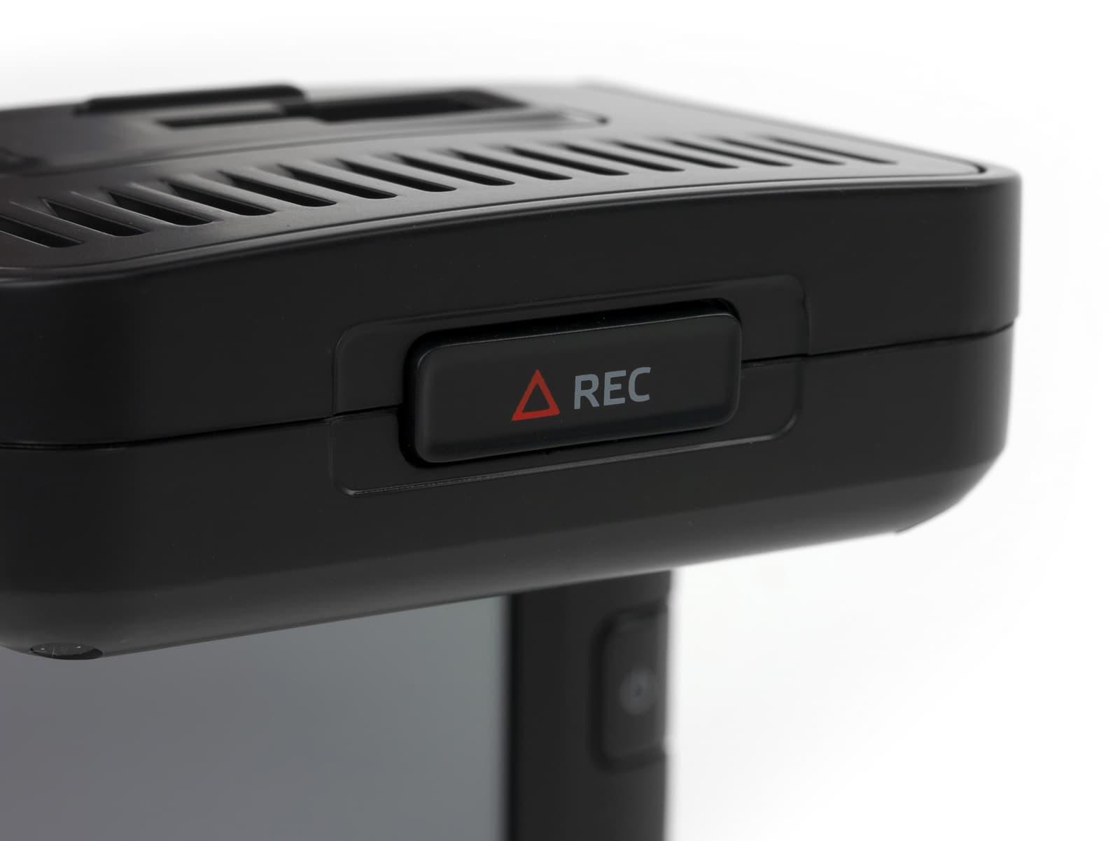 Neoline X-Cop 9500s предполагает управление только с помощью встроенного сенсорного экрана. Аппаратных кнопок у этой модели только две — кнопка включения/выключения и большая кнопка «Rec», которая используется для записи видеоролика, защищенного от циклической перезаписи (он помещается в папку Event). Также при многократном нажатии «Rec» текущую запись можно остановить или возобновить. Кнопка включения находится в правой части видеорегистратора и слегка утоплена в корпус, что защищает от случайного нажатия. Конечно, как и у других современных видеорегистраторов, включение модели может осуществляться автоматически при наличии внешнего питания, а выключение — при его отсутствии. Поэтому отдельная кнопка включения/выключения необходима лишь в тех случаях, когда эта модель используется в качестве портативной видеокамеры. Стоит отметить, что встроенный несъемный аккумулятор емкостью 200 мА·ч, по заявлению производителя, позволит записывать видео в автономном режиме на протяжении 20 минут.