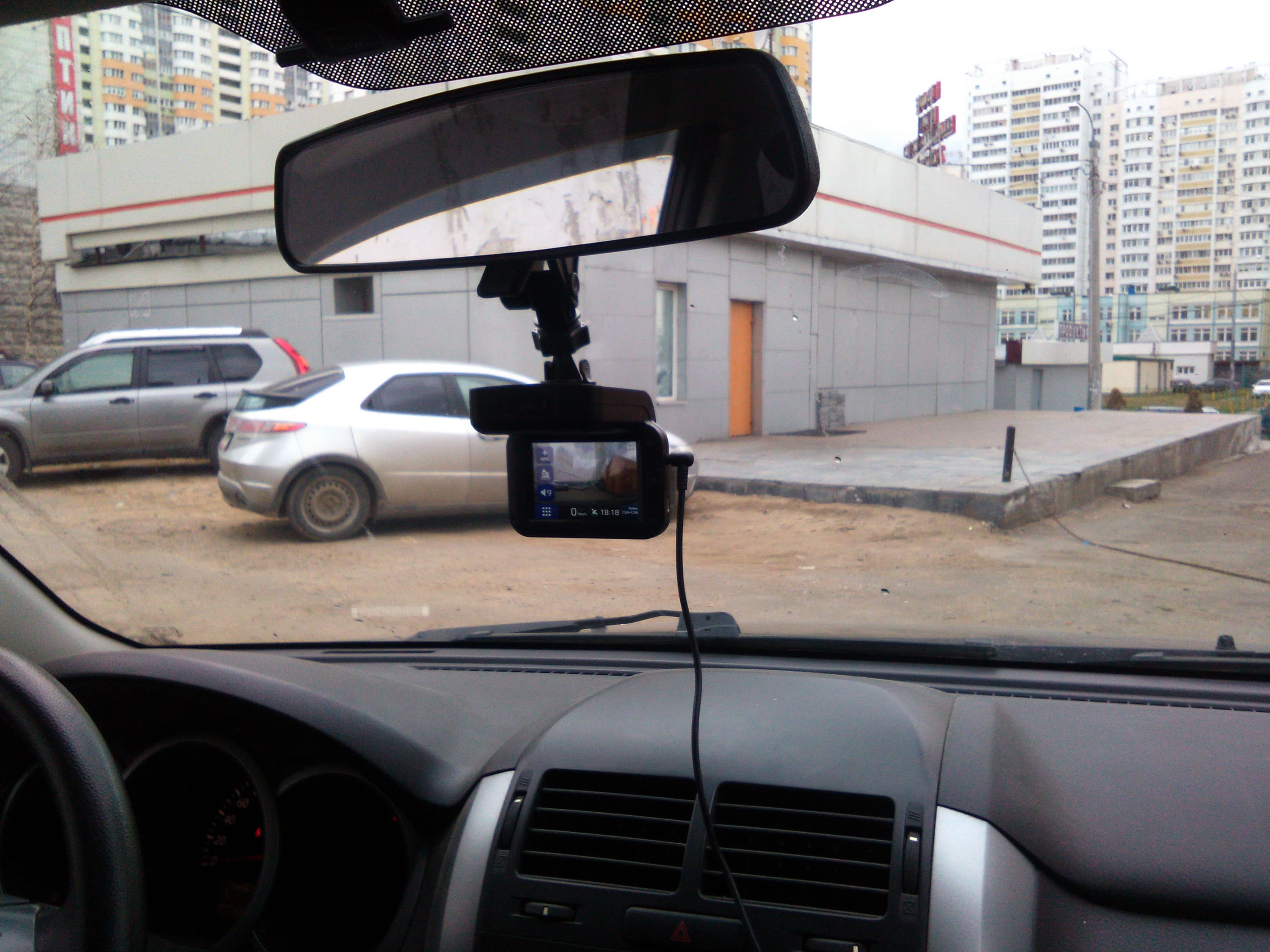 Следует сказать, что Neoline X-Cop 9500s предполагает крепление на лобовое стекло, но на сайте, посвященному этой модели, можно увидеть и такой нестандартный тип крепления. Правда в этом случае придется использовать кронштейн со скотчем, поэтому перед тем как использовать этот способ, нужно хорошо взвесить, стоит ли игра свеч. Кстати, на фотографии изображен режим заставки, который можно активировать взамен полного отключения экрана видеорегистратора. Весьма полезная функция.