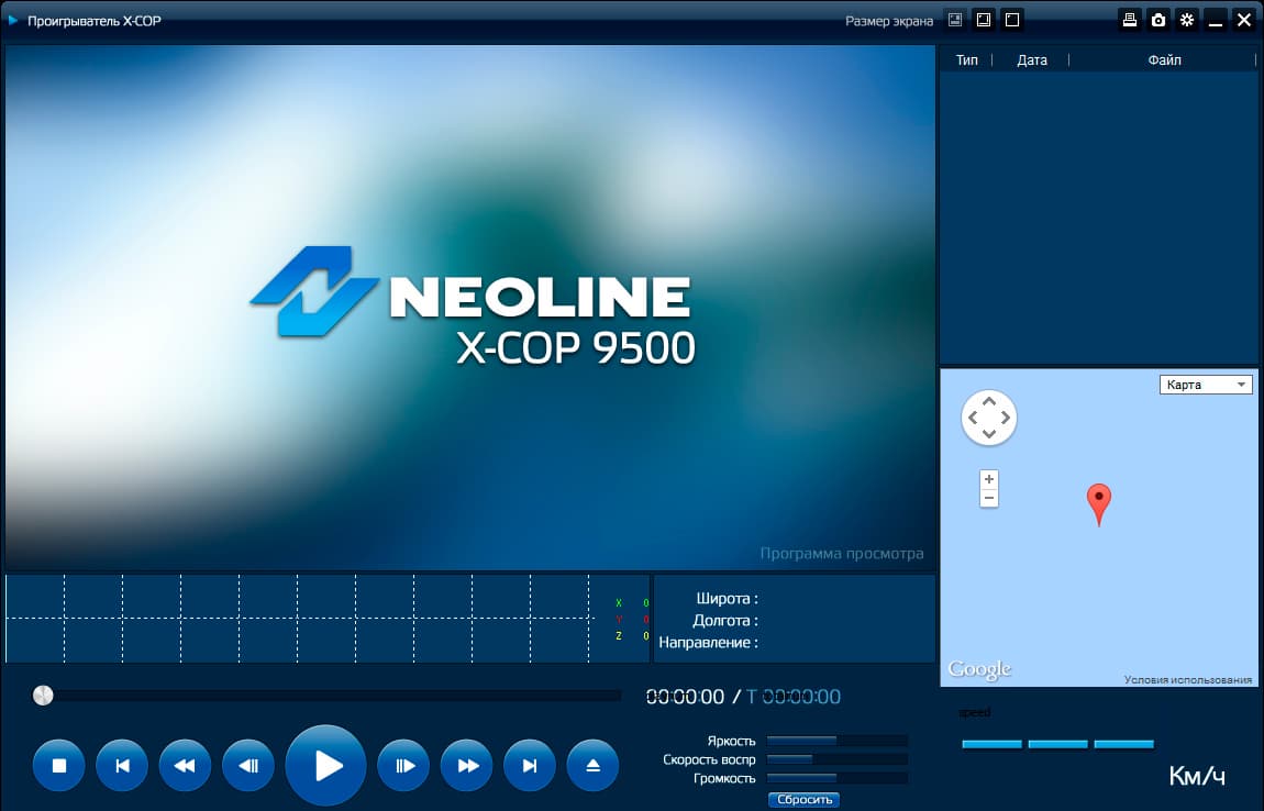 Для воспроизведения записанных видеороликов, пользователь может загрузить с сайта производителя фирменную программу X-Cop Viewer. Утилита X-Cop Viewer была разработана специально для видеорегистраторов Neoline серии X-Cop 9500. Она позволяет воспроизводить записанные видеорегистратором ролики, а также выставлять, менять и задавать некоторые настройки видеорегистратора.