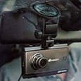 На стекле видеорегистратор хорошо заметен, особенно этому способствует «хромированный» объектив и металлическая вставка на корпусе. Впрочем, не зря же к нему прилагается кронштейн, подразумевающий быструю съемку и установку.