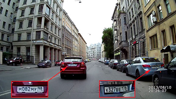 Наш любимый тест — попытка точно определить номер автомобиля по скриншоту с видеозаписи. Посмотрим, как герой сегодняшнего обзора справляется с этим заданием в светлое время суток.