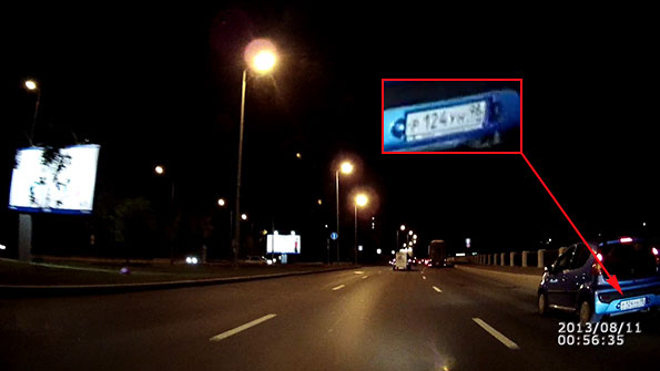 Вблизи и при небольшой относительной скорости номер можно разглядеть даже в углу. Для устройства средней ценовой категории это более чем приличный результат.
