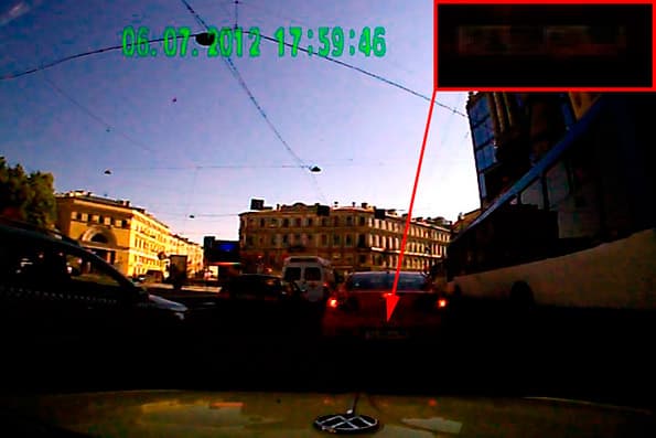 Даже со скидкой на низкое разрешение, все равно качество хромает на обе ноги. Ни одного номера, даже на близко стоящих авто, различить не удается, картинка слишком контрастная, много цветовых помех (а ведь это день!) Похвалить, да и то условно, можно разве что цветовой баланс — но вот уж какая характеристика для автомобильного видеорегистратора может смело быть объявлена не очень существенной, так это как раз он.