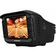На обращенной к пользователю стороне находится дисплей с диагональю 2″ и соотношением сторон 4:3. К яркости и углам обзора экрана претензий нет. Монитор имеет несколько режимов работы. На нем отображается картинка с камеры, служебные значки, текущая скорость и координаты, оповещения радар-детектора и GPS-информатора и другие данные. Можно настроить автоматическое выключение экрана. С противоположной стороны корпуса расположен объектив видеокамеры и линзы датчиков радар-детектора.