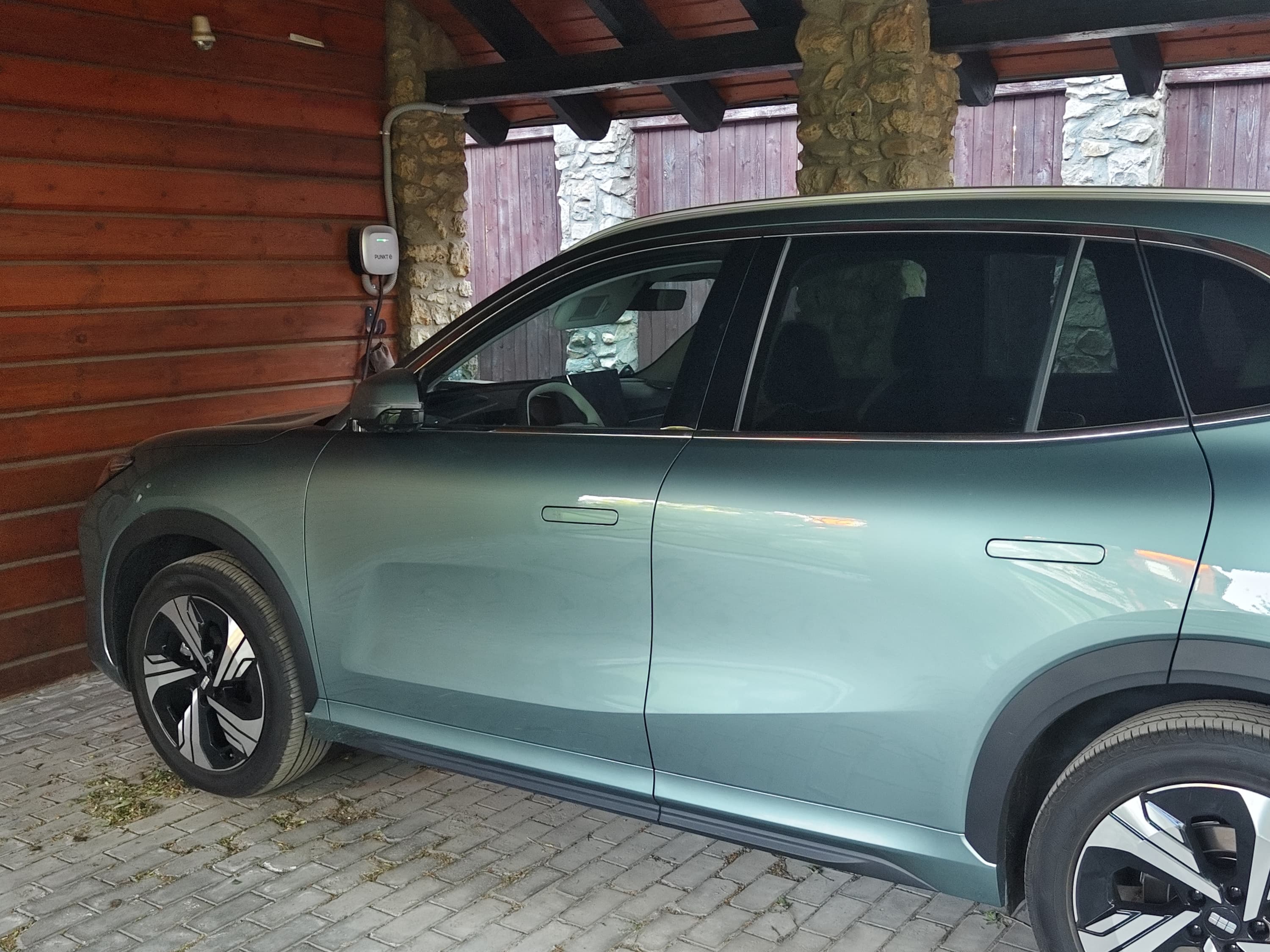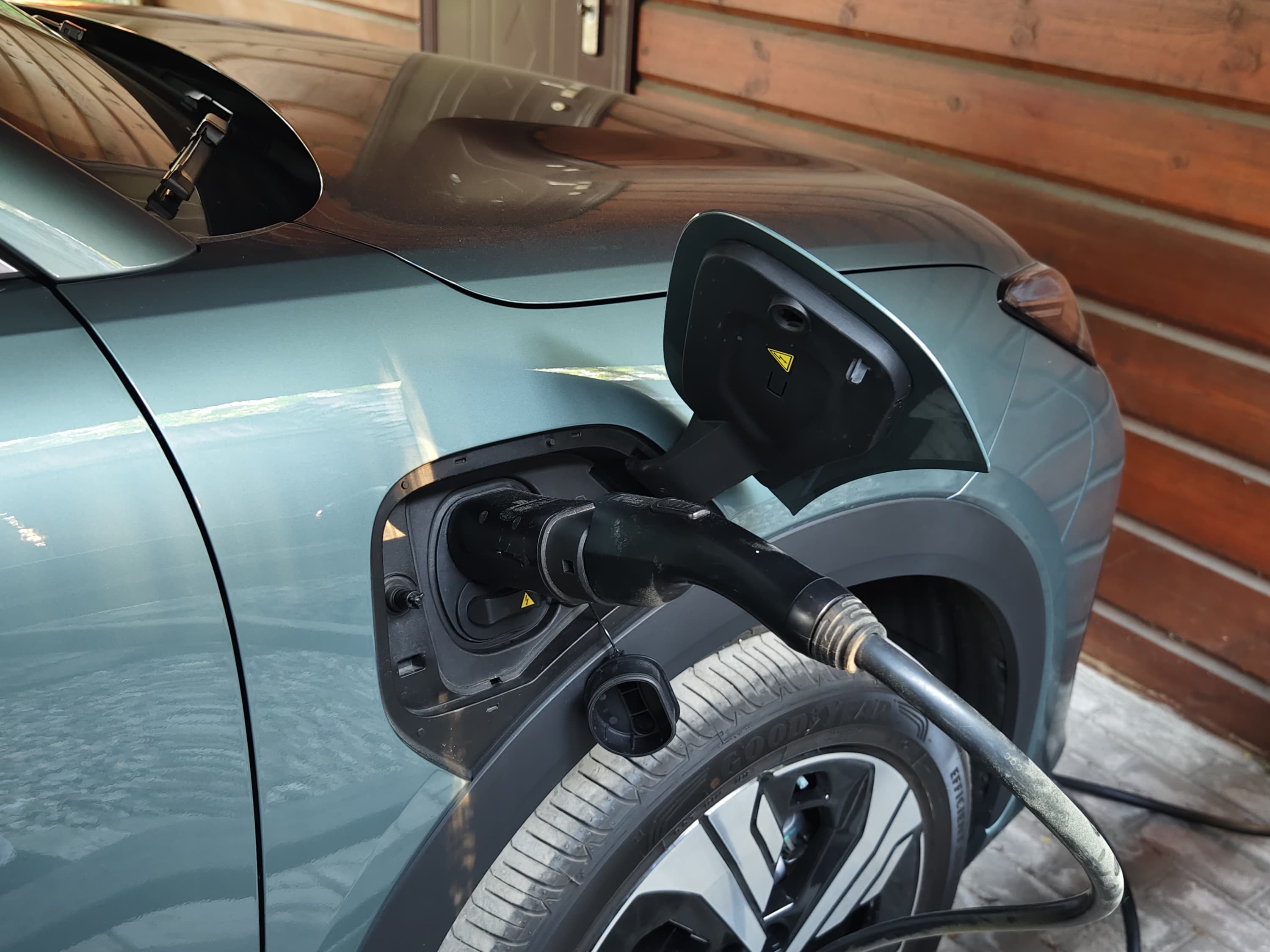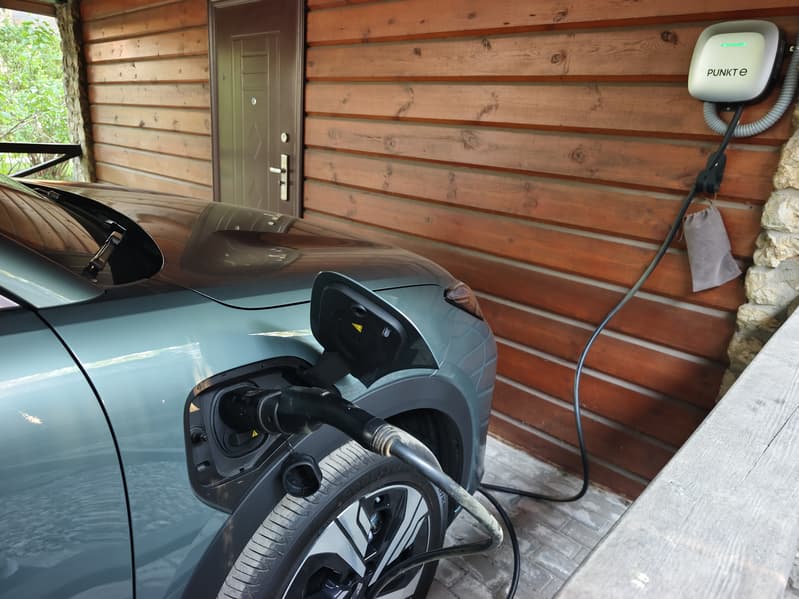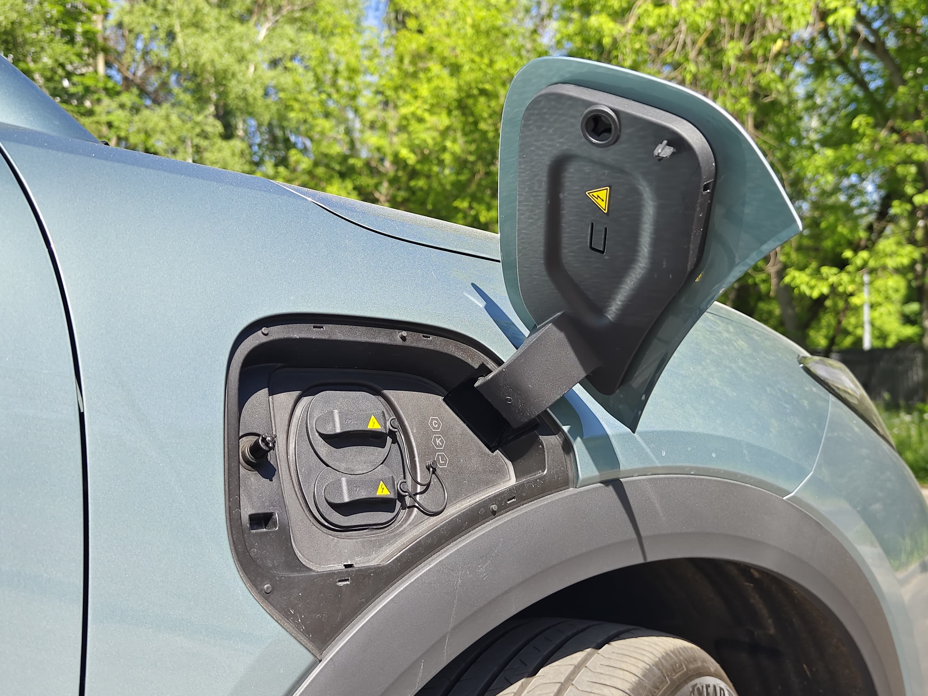 В нашем же случае такое расположение лючка зарядки создавало больше неудобств. Парковаться под навес приходилось также передом, потому как кабель зарядной станции, без дополнительных удлинителей, не доставал до переднего правого крыла автомобиля. К этому можно приспособиться, конечно, но выезжать почти во всех случаях из дворов и парковочных зон удобнее передом.