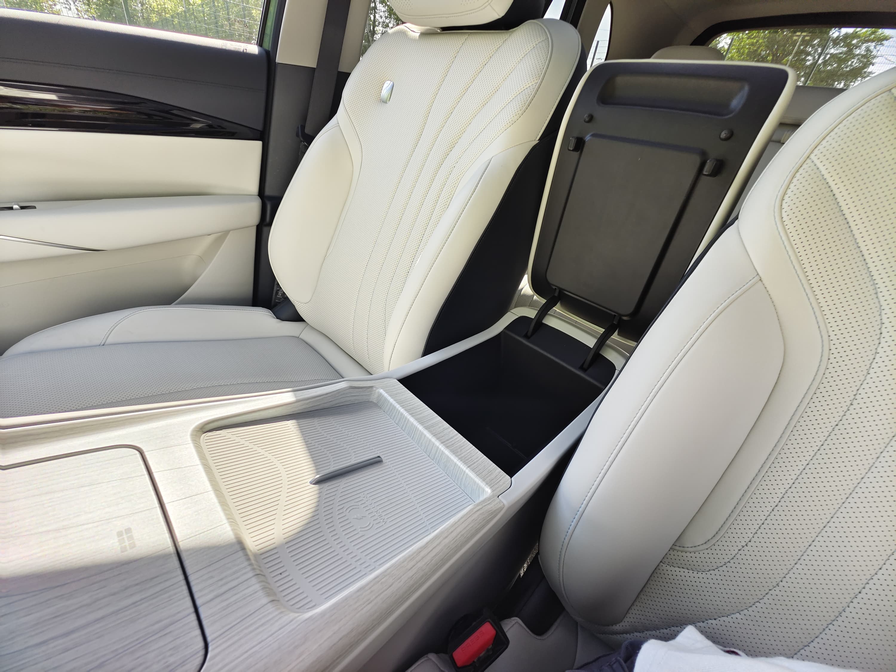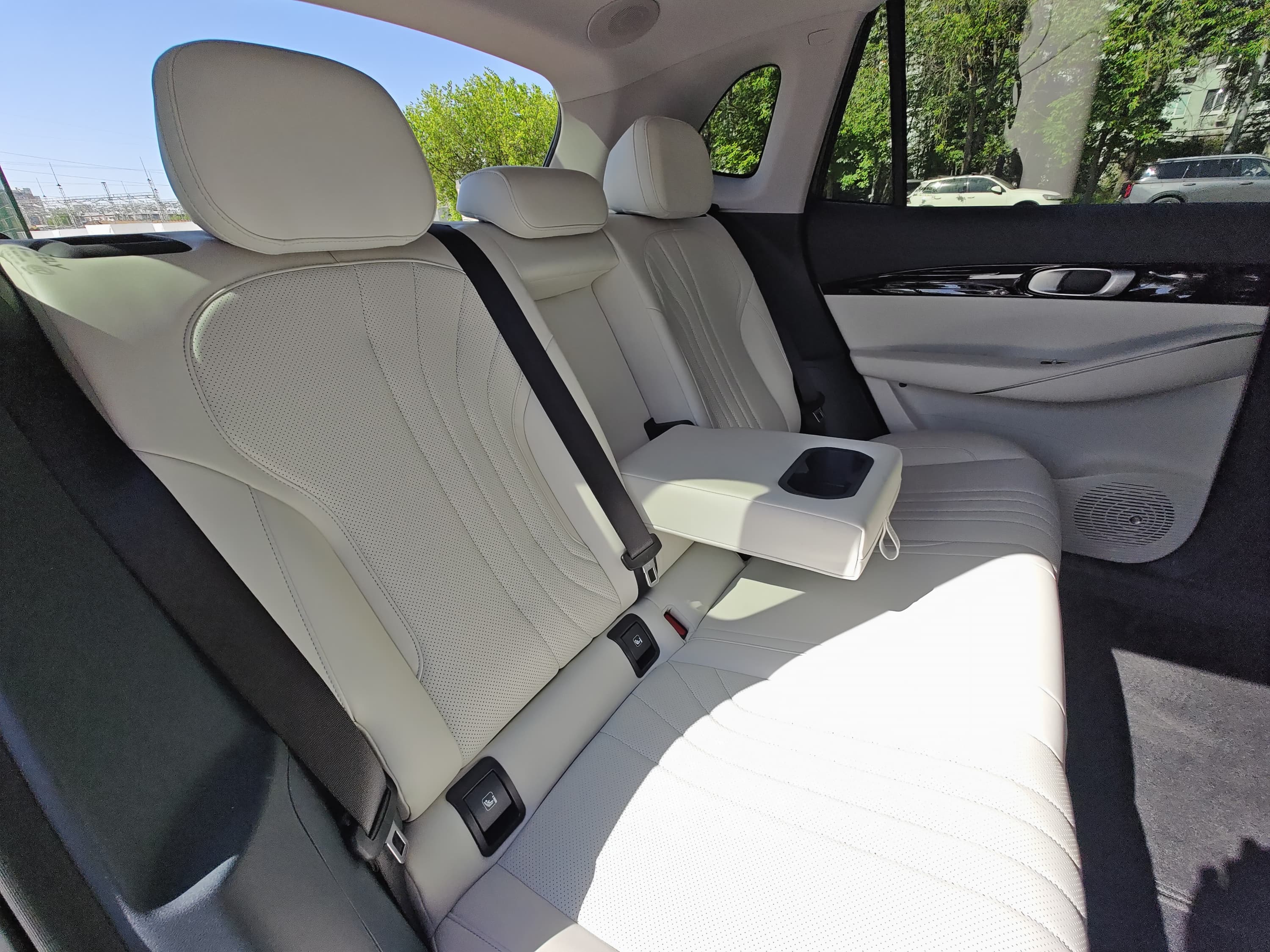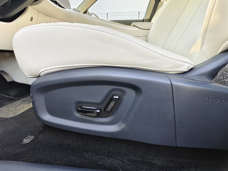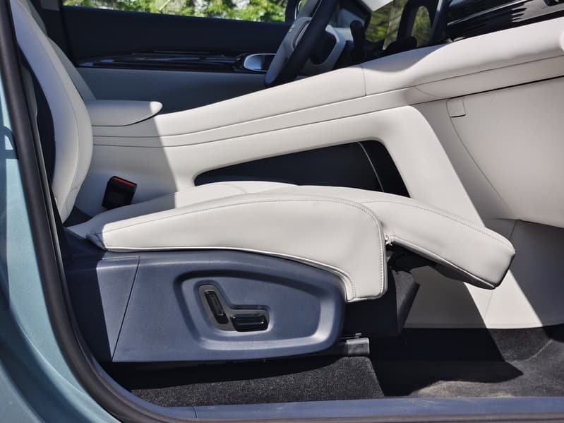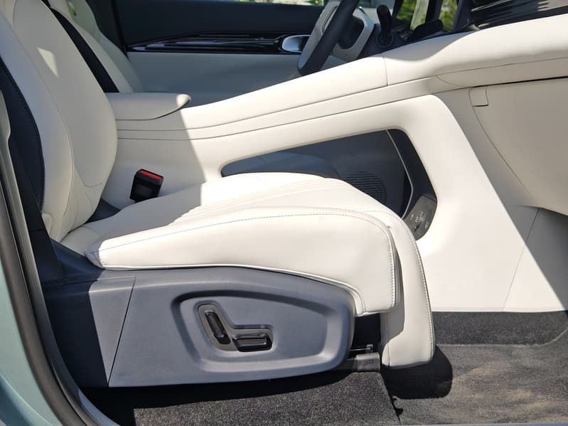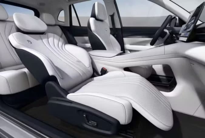 Передние сиденья Geely EX5 выделяются своей функциональностью и комфортом, особенно в топовой комплектации Max, где они предлагают широкий спектр регулировок и дополнительных опций. Сиденье водителя оснащено электрорегулировками в шести направлениях с функцией запоминания параметров для нескольких водителей. Сиденье переднего пассажира имеет электрорегулировки в четырех направлениях, а в более высокой комплектации добавляется поддержка для ног и возможность горизонтального раскладывания, превращающая его в удобное место для отдыха.