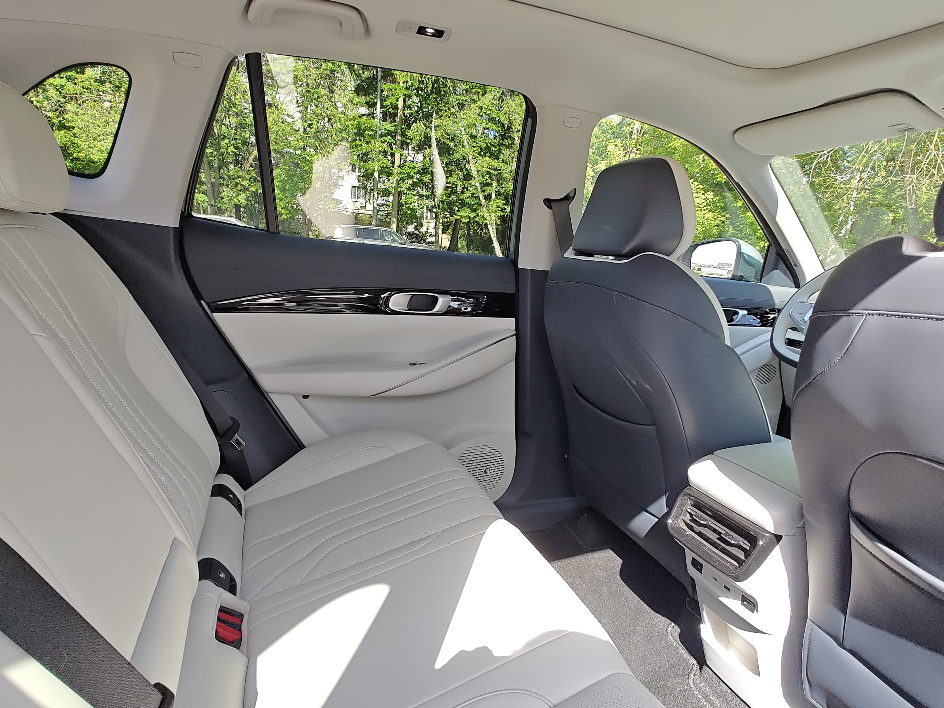 Geely EX5 оснащён панорамной крышей, это делает салон более светлым и визуально просторным.