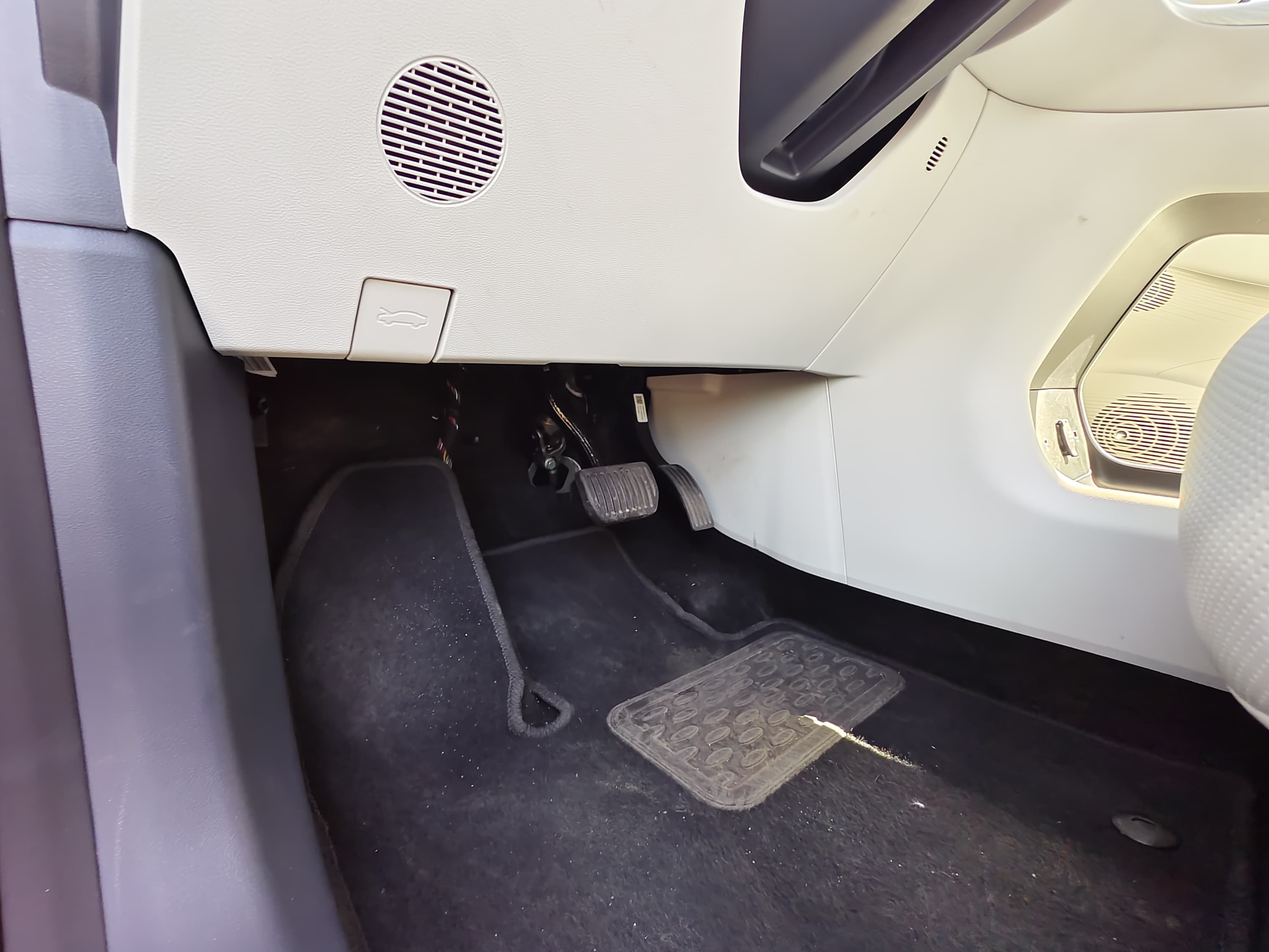 Пол почти ровный благодаря отсутствию трансмиссионного тоннеля (электромобиль всё-таки).