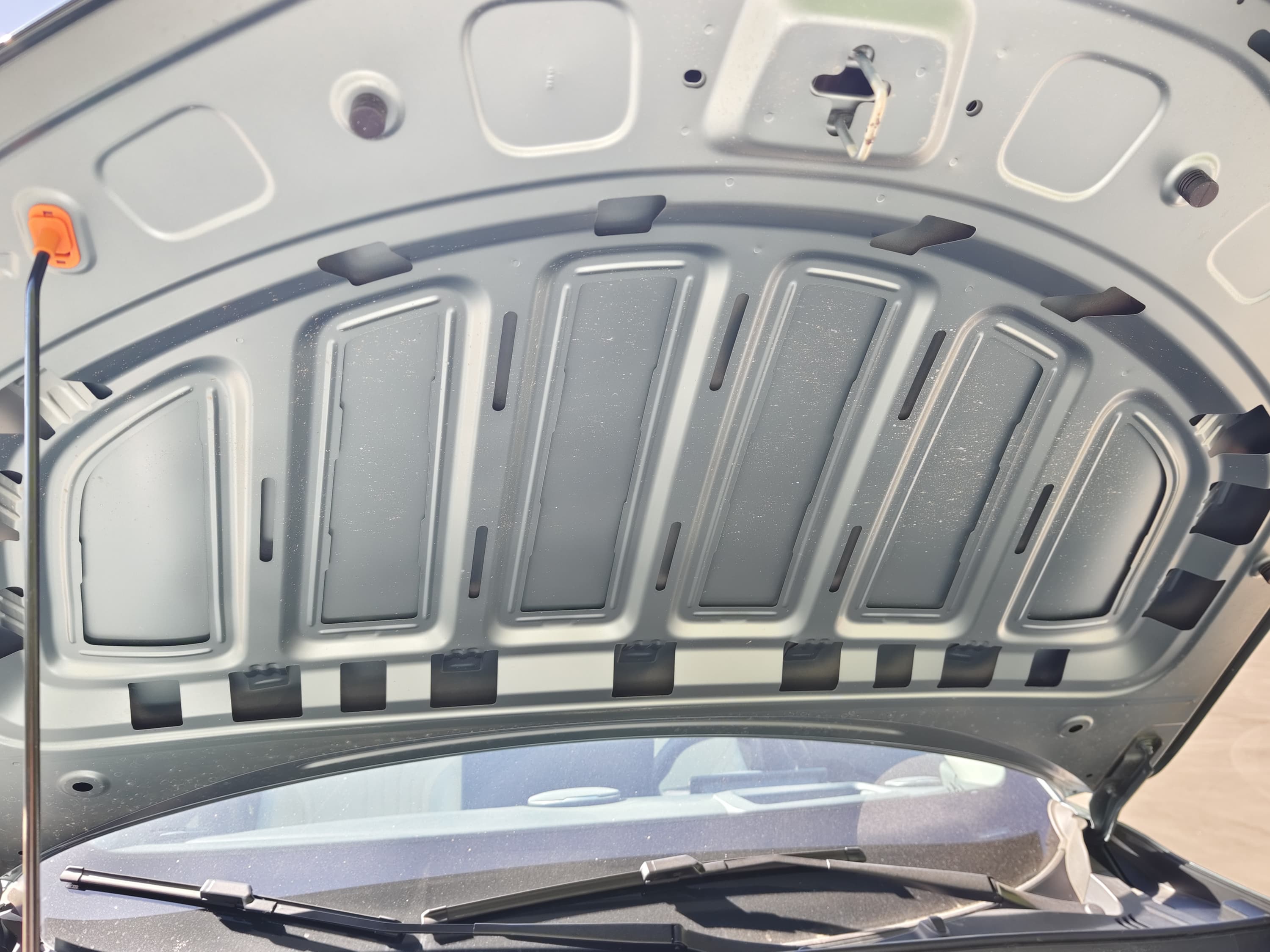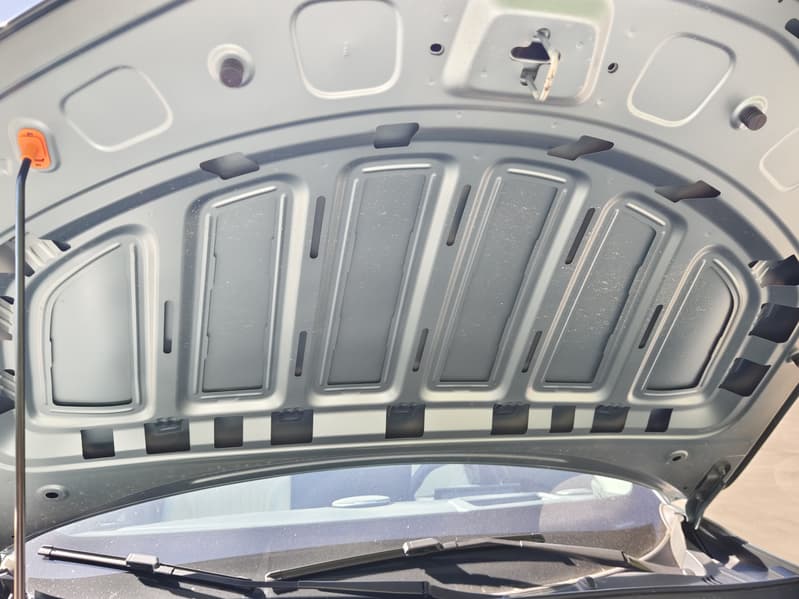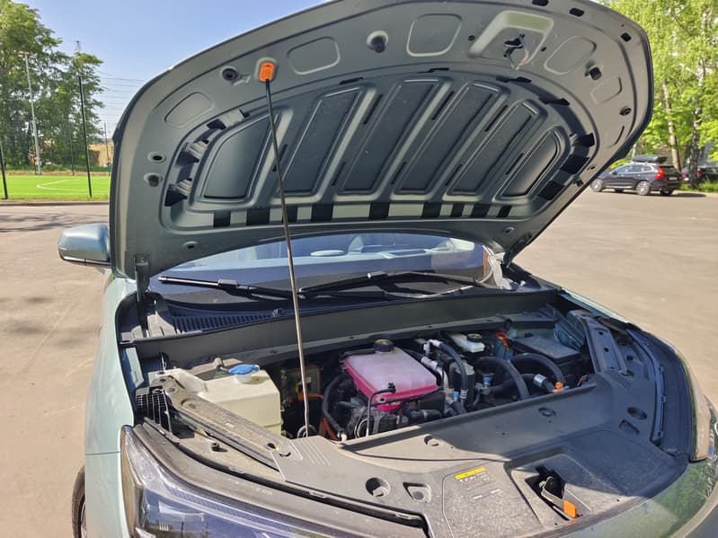 Сам капот, по-старинке, держится в открытом виде на «кочерге», а не на куда более удобных амортизационных упорах. Шумоизоляции также не предусмотрено — в виду отсутствия значительного подкапотного источника шума.