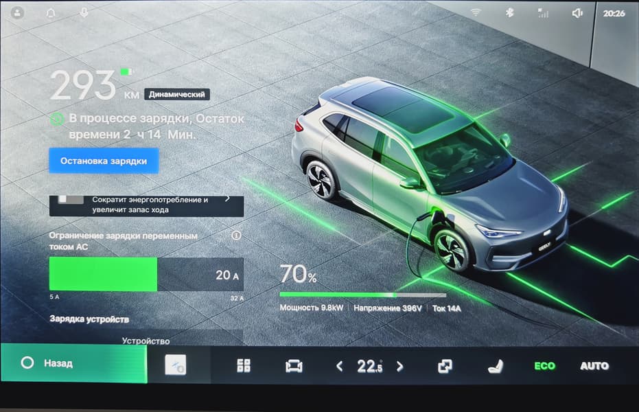 - Vehicle-to-Load (V2L): EX5 может выдавать до 3,3 кВт для питания внешних устройств (например, бытовой техники, такой как кофеварка или телевизор) через адаптер, подключаемый к зарядному порту.