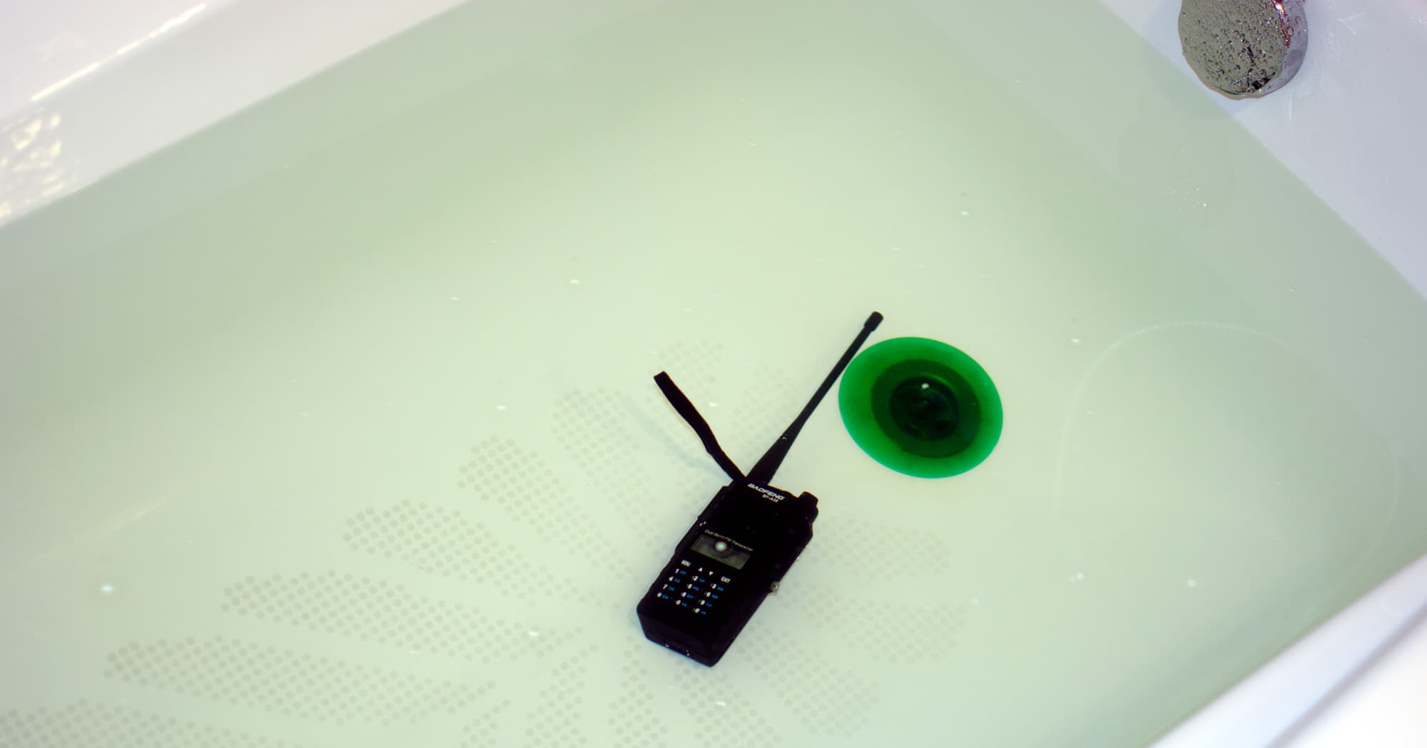 Вынули, отряхнули — рация продолжала работать, как будто ничего не происходило. И еще неоднократно работала в течение месяца после этого теста, так что долгоиграющих последствий погружение тоже не имело.
