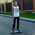 Для съемок мы пригласили детей, которые никогда ранее не катались на гироскутере. Мы предполагали, что им потребуется какое-то время для освоения нового транспортного средства. На деле же оказалось, что достаточно объяснить принцип работы и управления гироскутером, подстраховать при поиске баланса, и всё, ребенок поехал. Через минуту страховка не нужна, и юный наездник выписывает виражи.