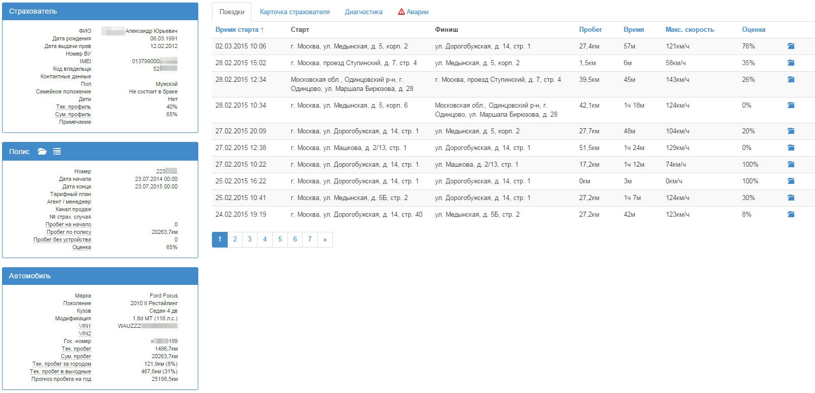 Первый трекер (Novatel), который попал к нам на тест и фото которого вы видели выше, работал с большими перебоями. Регистрация поездок шла выборочно, а некоторые из тех, что отображались, имели неполноценные данные.