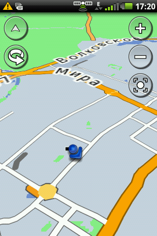Отображение карты возможно в двух основных режимах: в виде обычной карты и трехмерный вид сзади-сверху. Несмотря на то, что в настойках навигационной программы есть выбор детализации карты, влияние он оказывает только на режим вождения. По мере изменения масштаба, детализация карты имеет разную плотность, в ряде случаев неприемлемо большую (центральный скриншот). Сдвиг и отображения карты навигатор производит неторопливо, отрисовывая послойно дороги и адресную информацию. Ожидание полного отображения занимает несколько секунд, что субъективно выглядит как «тормознутость» программы. Впрочем, для процессора в 600 мегагерц результат удовлетворительный и вполне ожидаемый.