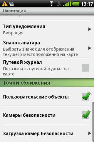 Раздел «Настройки» навигационной системы Garmin разделен на 4 подраздела. В основных настройках задаются общесистемные вещи, настройки маршрута и карты могут быть заданы индивидуально для пешеходного и автомобильного режима, а раздел точки сближения позволяет задействовать предупреждения о радарах и камерах.