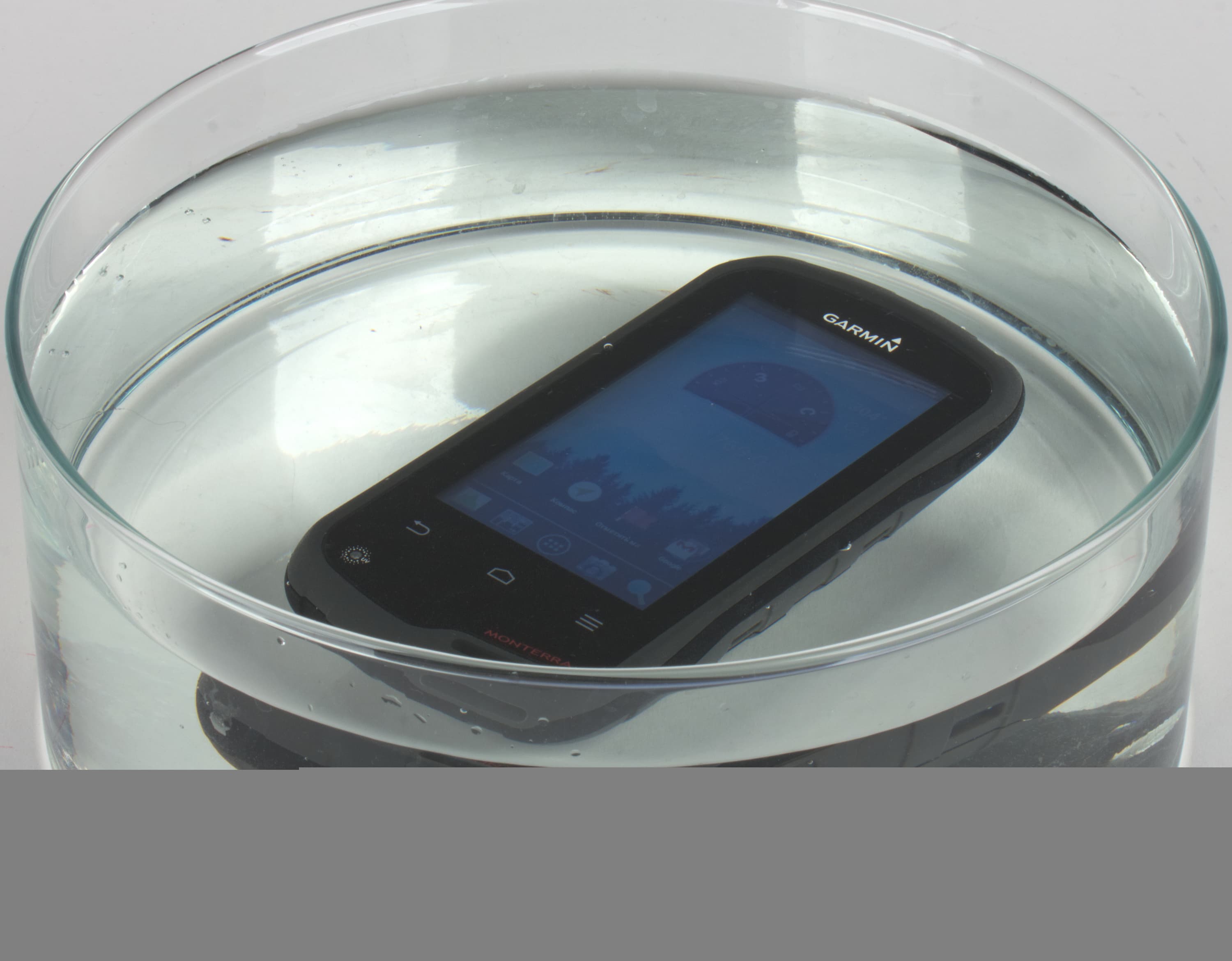 Серая поверхность экрана Garmin Monterra подтверждает написанное выше. Отражение в экране двоится, что предполагает наличие воздушной прослойки между поверхностью матрицы и внешним стеклом. На внешней поверхности экрана есть специальное олеофобное (жироотталкивающее) покрытие (не очень эффективное, хуже, чем у Nexus 7), поэтому следы от пальцев удаляются легче, а появляются с меньшей скоростью, чем в случае обычного стекла.