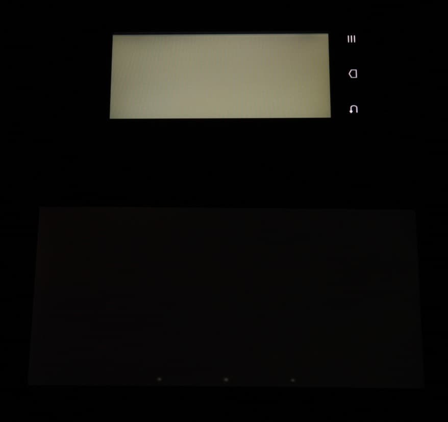 При перпендикулярном взгляде равномерность черного поля неидеальная, так как присутствуют области с немного повышенной яркостью черного поля: