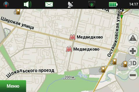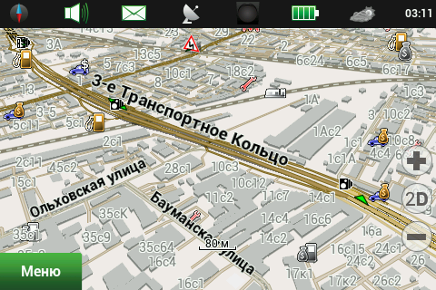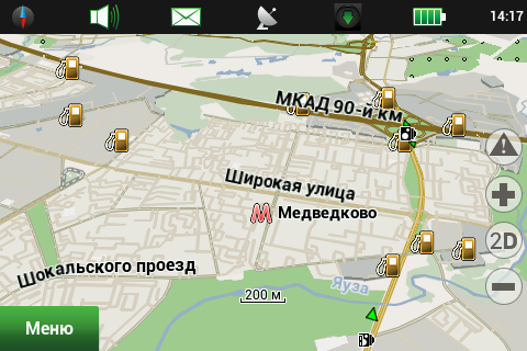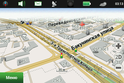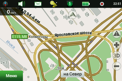 Лицензионная политикаПродукт предназначен для установки на одно устройство. Карты приобретаются для использования с одним продуктом. Продукт может быть перерегистрирован на любое другое устройство три раза. Исключение составляет продукт для iOS (iPhone и iPad), который можно переносить пять раз, но только на устройства Apple. Все остальные версии можно переносить три раза, на любую операционную систему, кроме iOS. Использовать продукт на трех устройствах одного пользователя можно, но это нарушает лицензию. Таков был ответ технической поддержки. Мы считаем, что условия использования программы, и особенно карт, не способствуют лицензионному использованию. Также отметим, что существует практика прекращения поддержки устройств, если их производитель/дистрибутор вдруг перестал быть угодным ЗАО «ЦНТ». Таким образом, в предпочтительном положении находятся покупатели автомобильных навигаторов, выпущенных под маркой «Navitel». Возможности навигационной программыВ этой статье мы подробно рассмотрим все возможности, предоставляемые навигационной программой «Навител Навигатор». В качестве тестового устройства выступит Garmin-ASUS A10, также побывавший в нашей лаборатории. Соответственно, версию «Навител Навигатор» мы возьмем 5.5.1.0 (особая благодарность службе технической поддержки компании ЗАО «ЦНТ», которая продлила тестовый период, что позволило завершить тестирование на лицензионной версии программы). Версии для других устройств и операционных систем могут иметь некоторые отличия, рассмотреть их все мы не имеем возможности. В процессе тестирования и снятия скриншотов мы старались максимально использовать установки по умолчанию. В целях экономии интернет-трафика и сохранения относительно компактного размера статьи большинство скриншотов открываются по текстовым ссылкам (достаточно щелкнуть по ссылке, скриншот откроется во всплывающем окне без перезагрузки страницы), суммарный размер графики в статье — 5 МБ. Использовался установленный по умолчанию скин Navitel в дневном варианте. Ночной вариант скина предназначен для уменьшения засветки глаз водителя при движении в темноте. ![]() Во время тестирования надобности в ночном режиме не возникало, минимальный уровень подсветки навигационного устройства обеспечивает комфортное восприятие даже в полной темноте. На официальном сайте программы доступно пять официальных скинов и множество пользовательских. Начиная с версии 5.5.х.х, «Навител Навигатор» получил обновленный интерфейс. Появился статус-бар, куда переместились иконки настроек режима отображения, звука, онлайн-сервисов, а также индикатор батареи и часы. Можно выбрать только нужные элементы, а если отключить их все, статус-бар пропадает, оставляя больше места для отображения карты. Пункты меню перегруппированы, они стали несколько более логичными и понятными. Отображение карты«Навител Навигатор» может показывать карту в стандартном и панорамном режимах, причем в панорамном режиме только на масштабах мельче 300 метров. По мере укрупнения масштаба происходит увеличение наклона карты. Строения на карте отображаются без учета их этажности, плоскими многоугольниками одинаковой высоты. Многоуровневые развязки и тоннели довольно наглядно отображаются в панорамном режиме. В стандартном виде тоннели выделены цветом, а эстакады можн