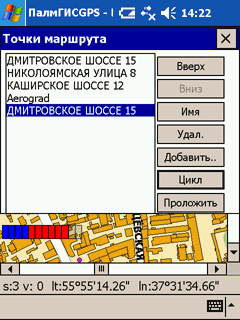 Возможности по тонкой настройке маршрута в недавно вышедшей версии ПалмГИС (build 16) существенно расширились. Во-первых, теперь можно задавать ключевые точки, через которые будет прокладываться трасса движения. Составленный маршрут не всегда получался оптимальным. ПалмГИС с упорством, достойным лучшего применения, прокладывает трассу «Алтуфьево-Выхино» через центр города. Пара контрольных точек на МКАДе с лёгкостью решает проблему. Полезным оказывается и непосредственное применение функции. Например, чтобы создавать оптимальный маршрут посещения магазинов.