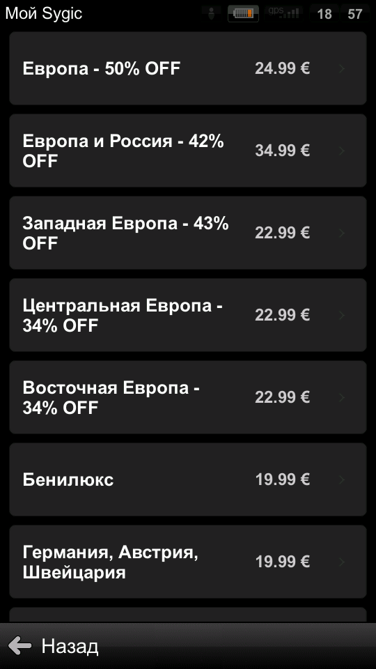 Тем не менее, ассортимент доступных карт разных стран у Sygic весьма впечатляет, их около 130.