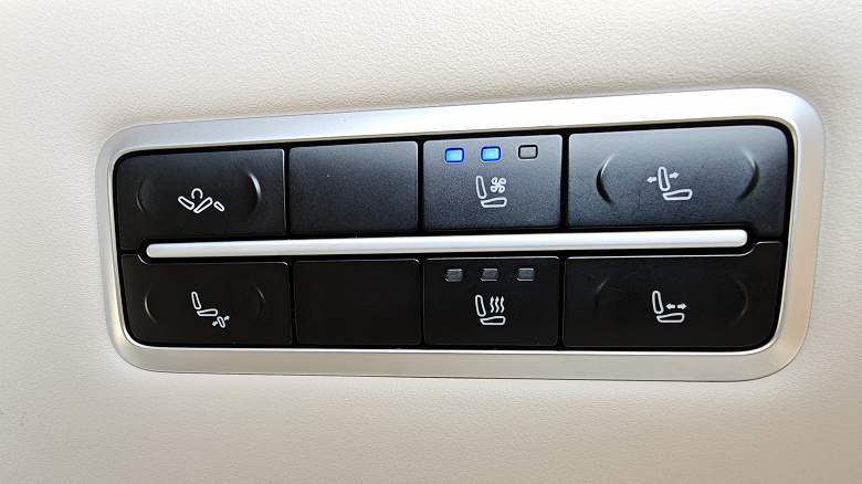 Обогрев и вентиляция сидений есть как спереди, так и на втором ряду.
