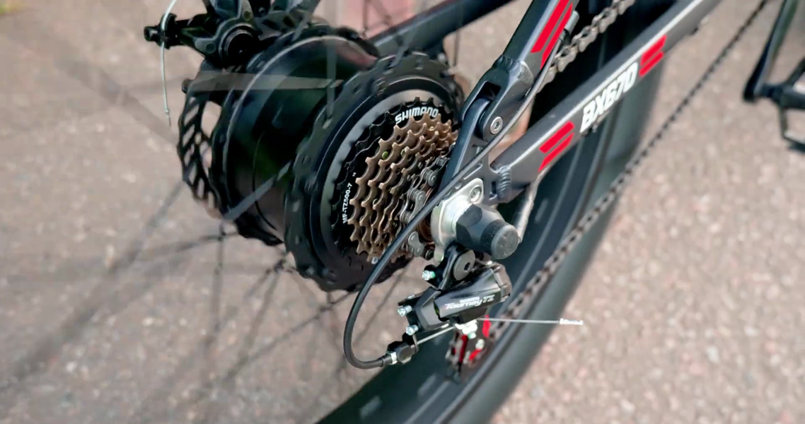 В общем, Hiper сделали еще один мощный фэтбайк. Здесь большие широкие колеса, мощный мотор и режим езды вообще без кручения педалей. В комплекте есть весь обвес — можно сразу ехать. Но велосипед тяжелый, так что без помощи мотора ездить совсем не комфортно. Ну, и чтобы затащит его в квартиру, тоже потребуется физическая подготовка.