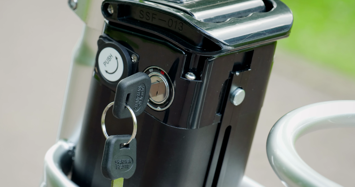 А еще к велосипеду прилагается две пары ключей — всё во имя безопасности. Первые включают велосипед и его бортовой компьютер, без такого ключа мотор работать не будет — во время езды его нужно держать вставленным. Вторая пара нужна для разблокировки заднего колеса, такой ключ можно вытащить, а скважину прикрыть крышкой.