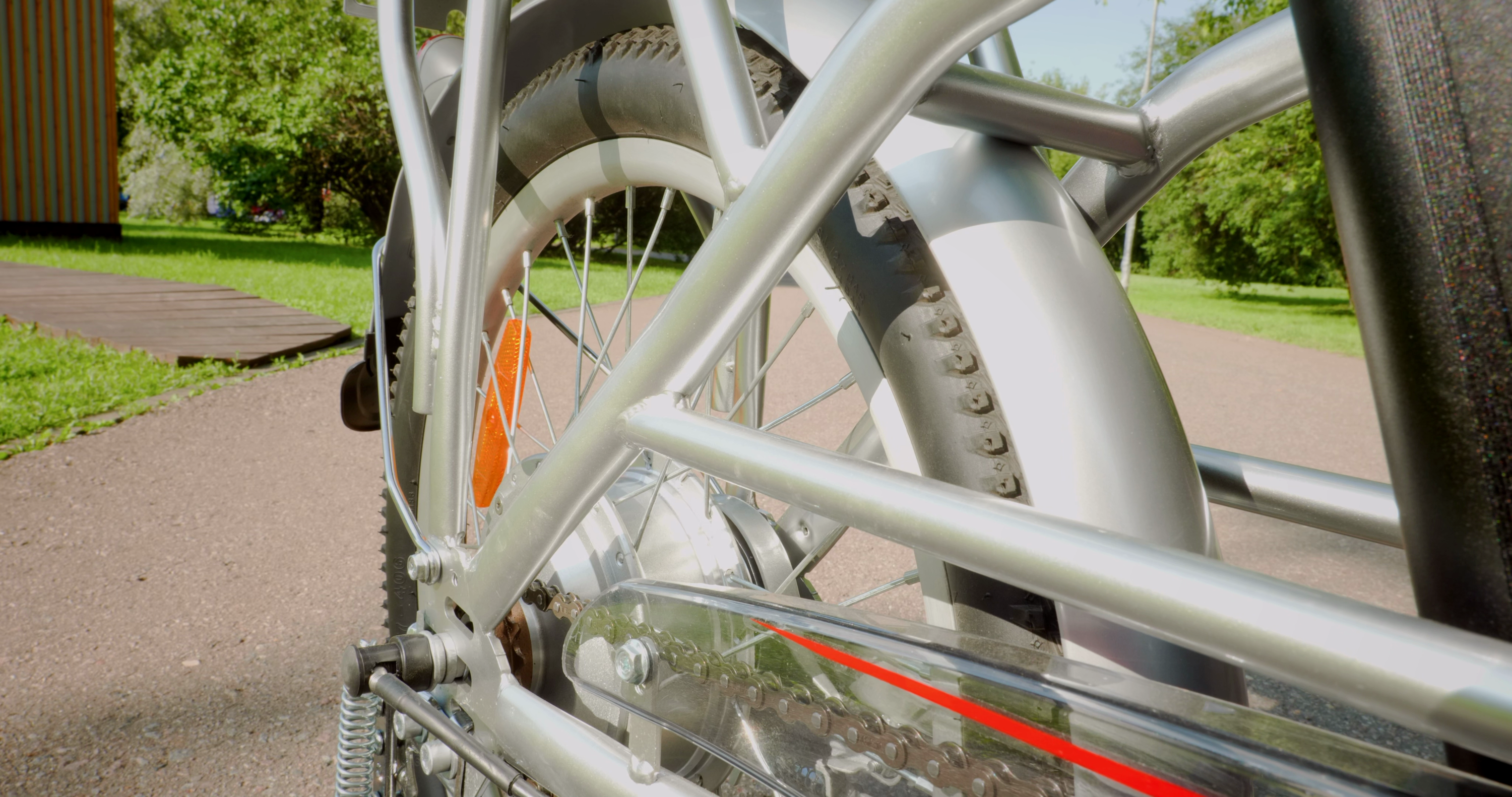 Заявлена защита велосипеда на уровне IPX4. Это значит, что в сильный дождь и зимой на нём ездить не стоит. Но существуют мастерские, которые занимаются герметизацией электросамокатов, и они вполне могут взяться за «тюнинг» электровелосипеда.