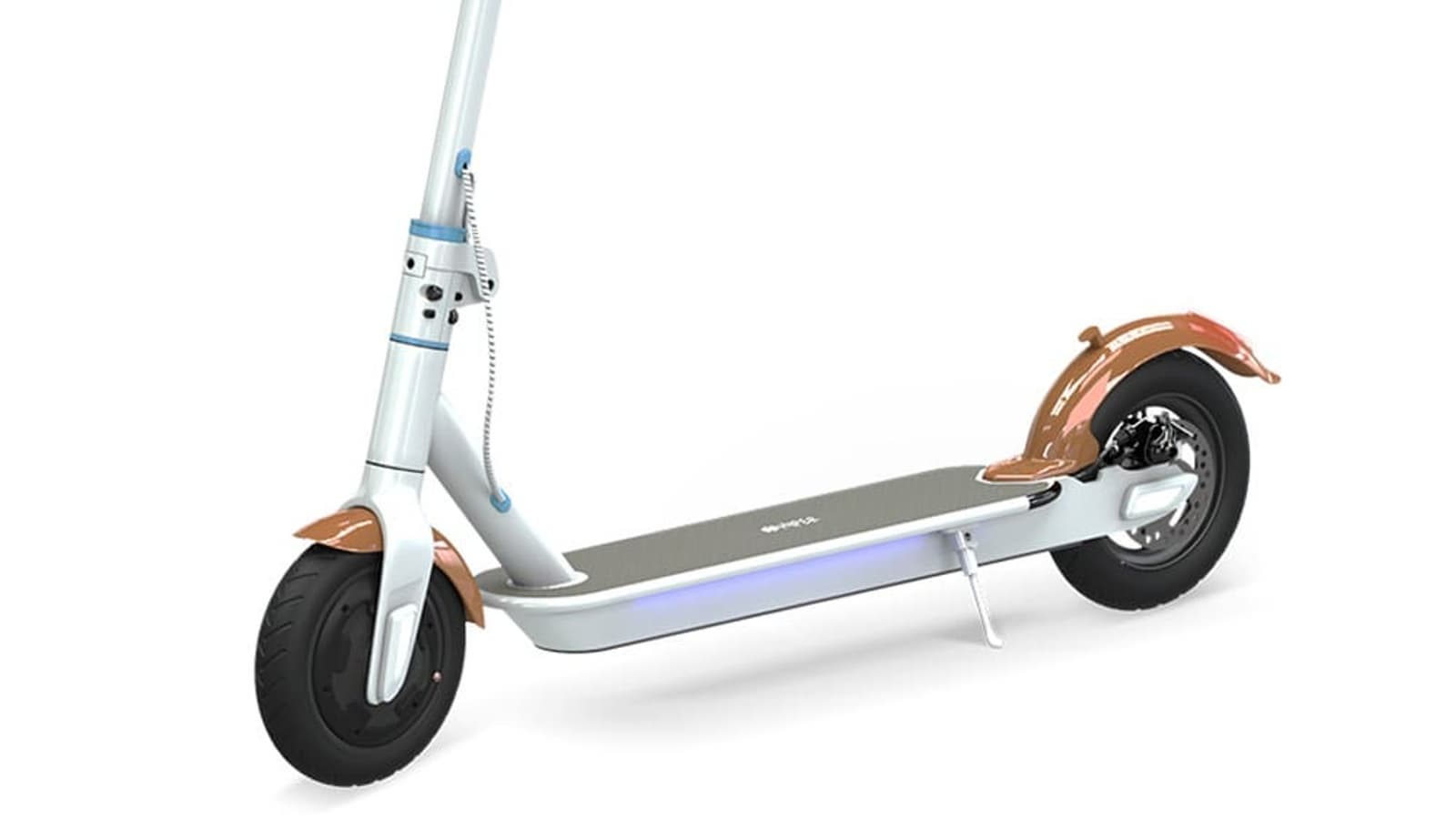 От брызг и камней водителя защитят крылья, выполненные из пластика. В заднее крыло встроен светодиодный стоп-сигнал, загорающийся при нажатии тормоза. Такие же красные светодиоды встроены в платформу самоката сзади. По бокам колес расположены светоотражающие элементы. На заднем крыле присутствует крючок для фиксации самоката в сложенном состоянии. Соединения тормозного троса и проводов с корпусом устройства защищены резиновыми втулками.