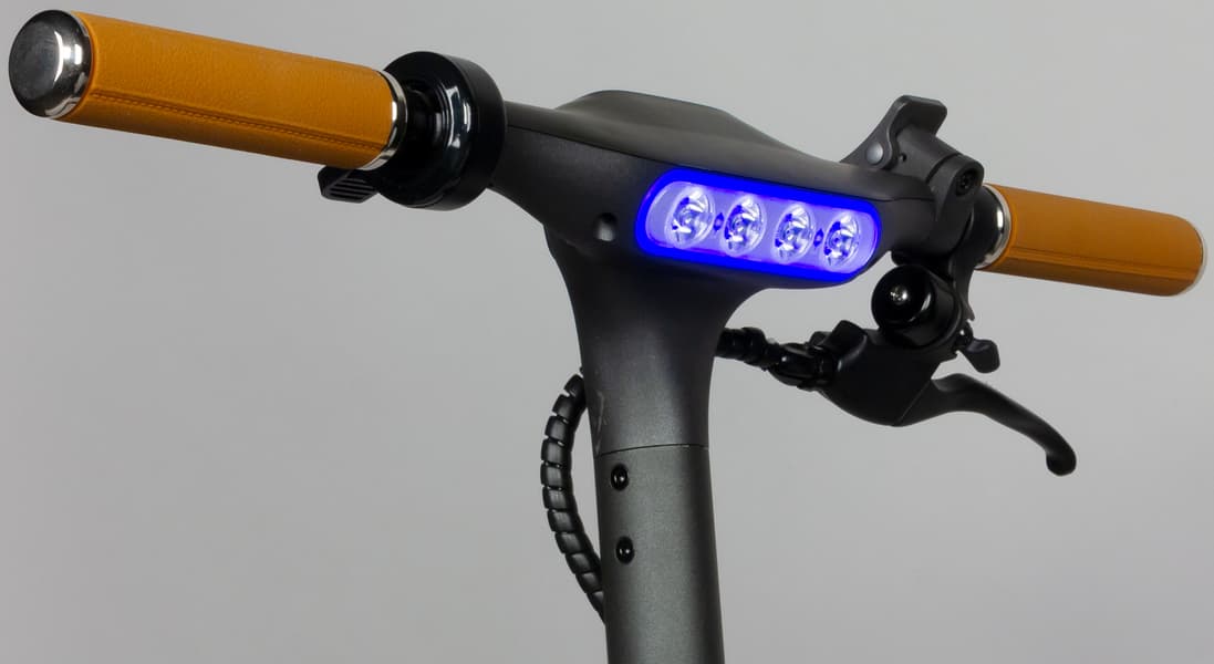 С обратной стороны расположена «фара» из четырех светодиодов, она же — одна из зон RGB-подсветки самоката.