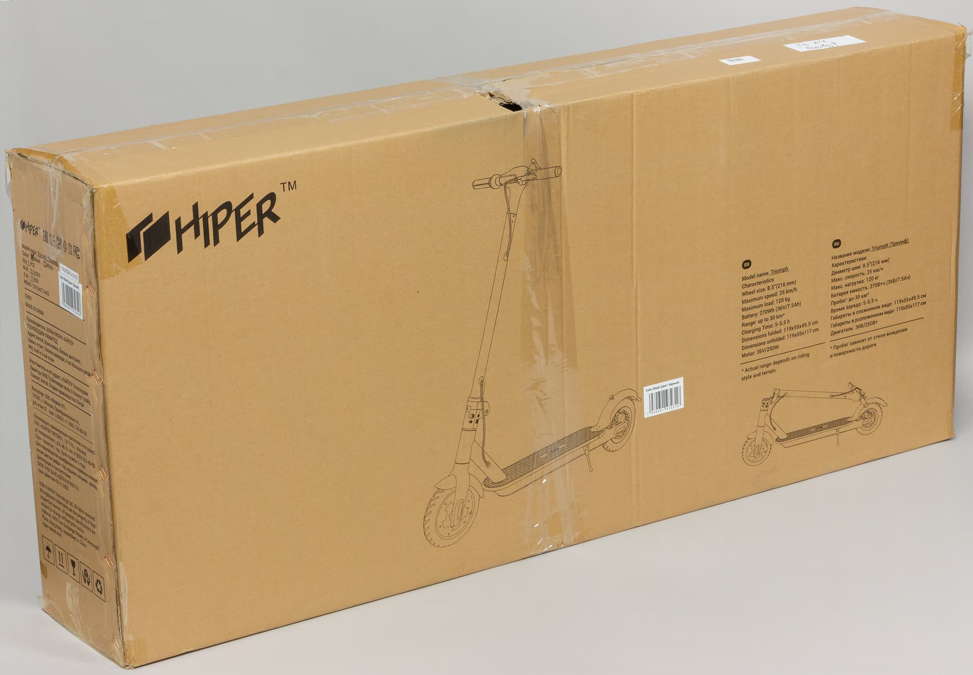 Hiper Triumph — складной электросамокат, совсем недавно появившийся на российском рынке. Производитель подчеркивает его большой запас хода — до 30 км (разумеется, оговорившись, что этот показатель сильно зависит от дорожного покрытия, местности, стиля вождения — и веса водителя, добавим мы). Давайте посмотрим, что он собой представляет.