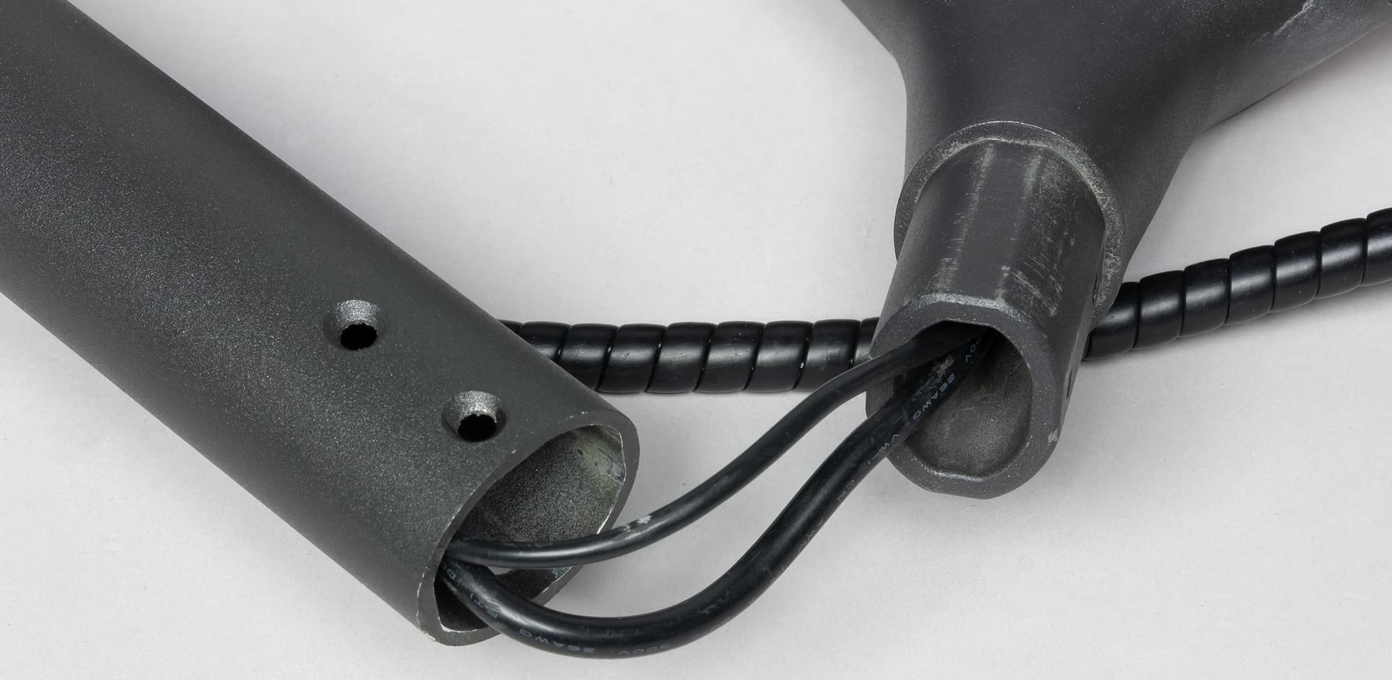 Самокат поставляется в полуразобранном виде — руль придется собрать самому. Верхняя часть руля крепится к «рулевой колонке» при помощи четырех болтов, которые входят в комплект и легко закручиваются шестигранным ключом. Рукояти руля, сделанные из металла и текстурированной резины, также вкручиваются самостоятельно. Высота руля не регулируется.